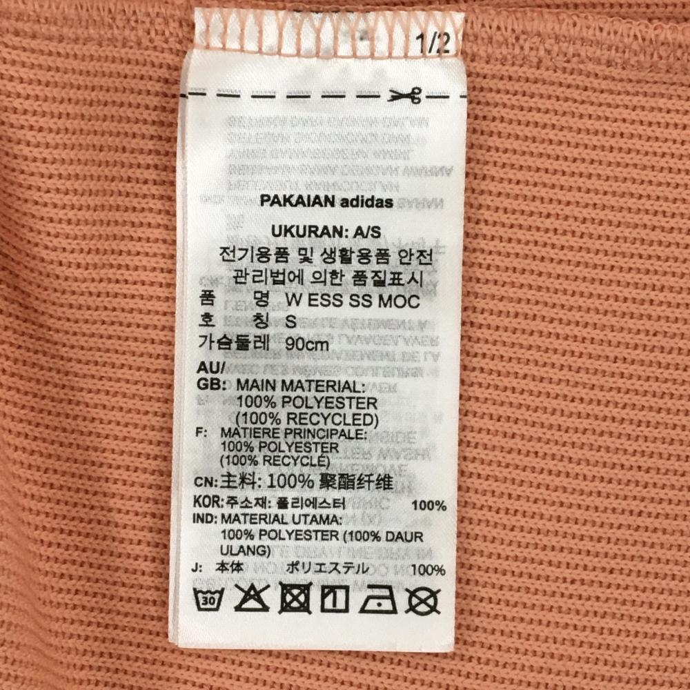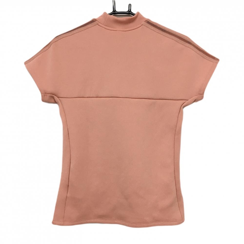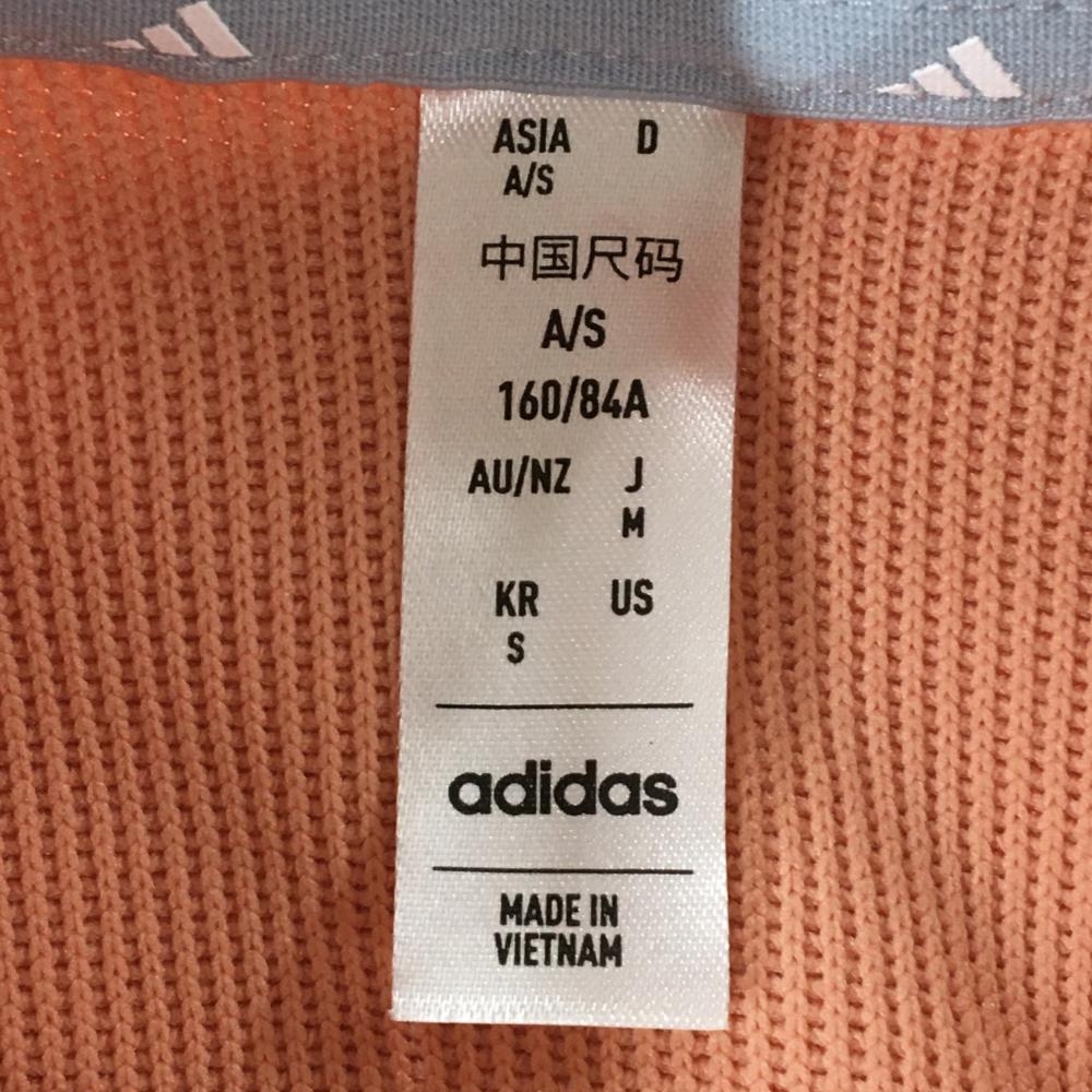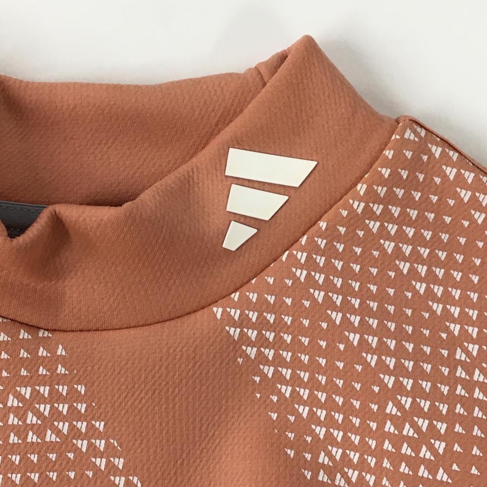【超美品】アディダス 半袖ハイネックシャツ サーモンオレンジ×白 前上部柄 レディース M ゴルフウェア 2023年モデル adidas