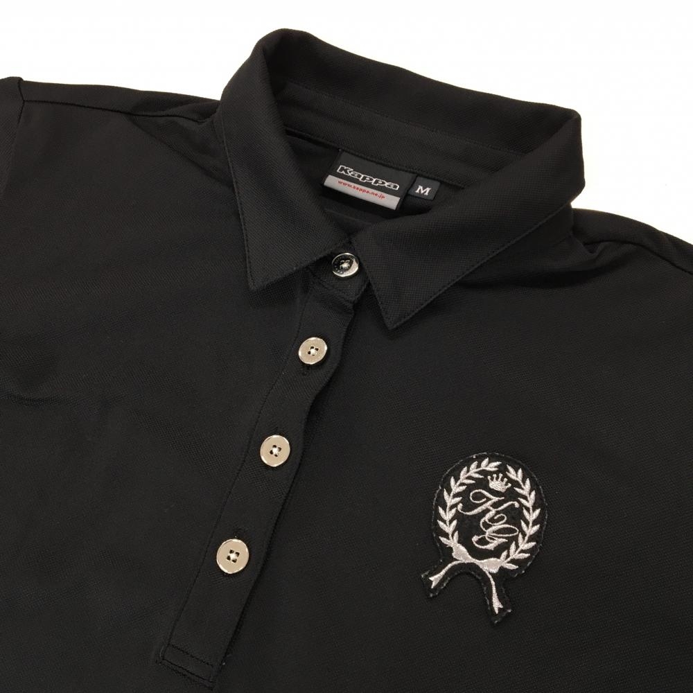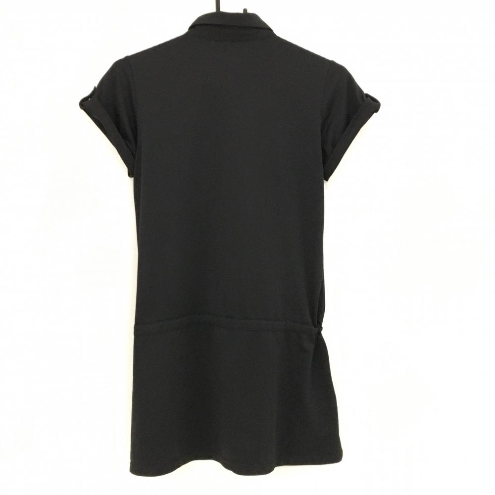 【美品】カッパ 半袖ポロシャツ 黒 ウエスト調節紐 チュニック丈 裾ロゴ レディース M ゴルフウェア Kappa