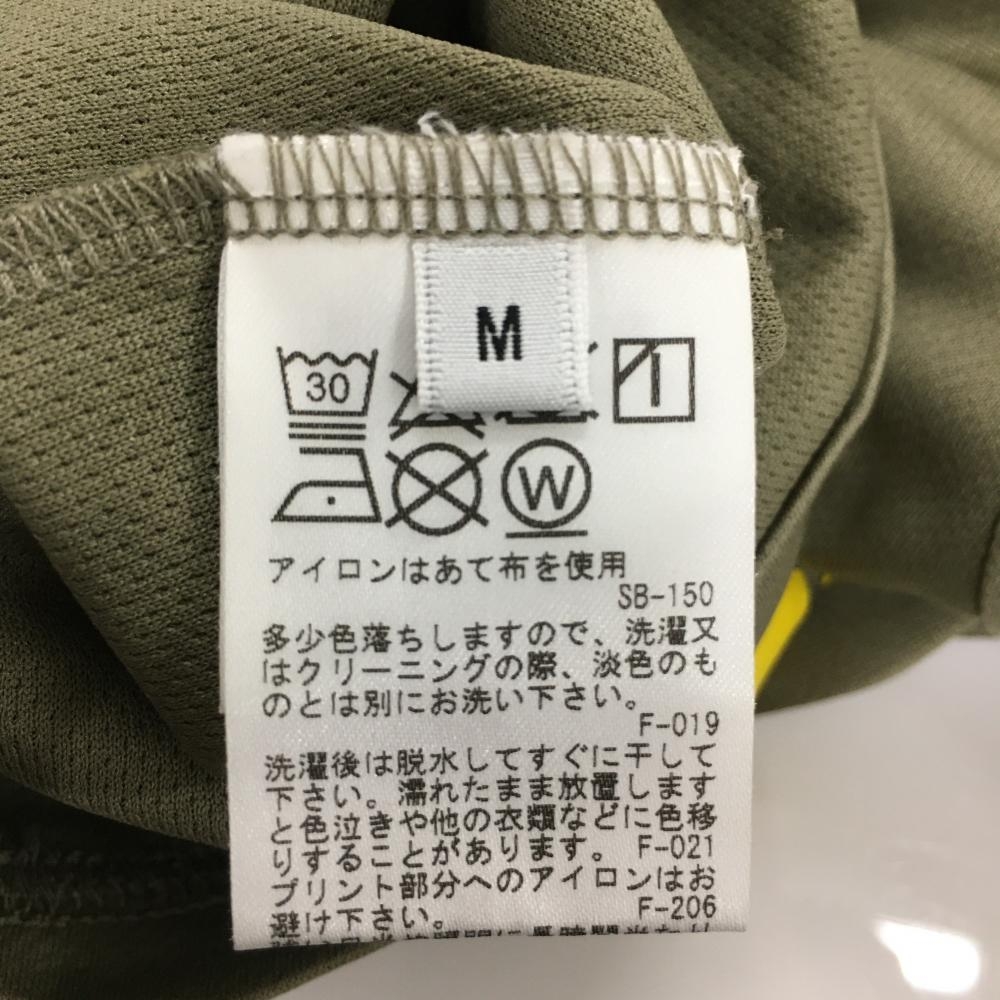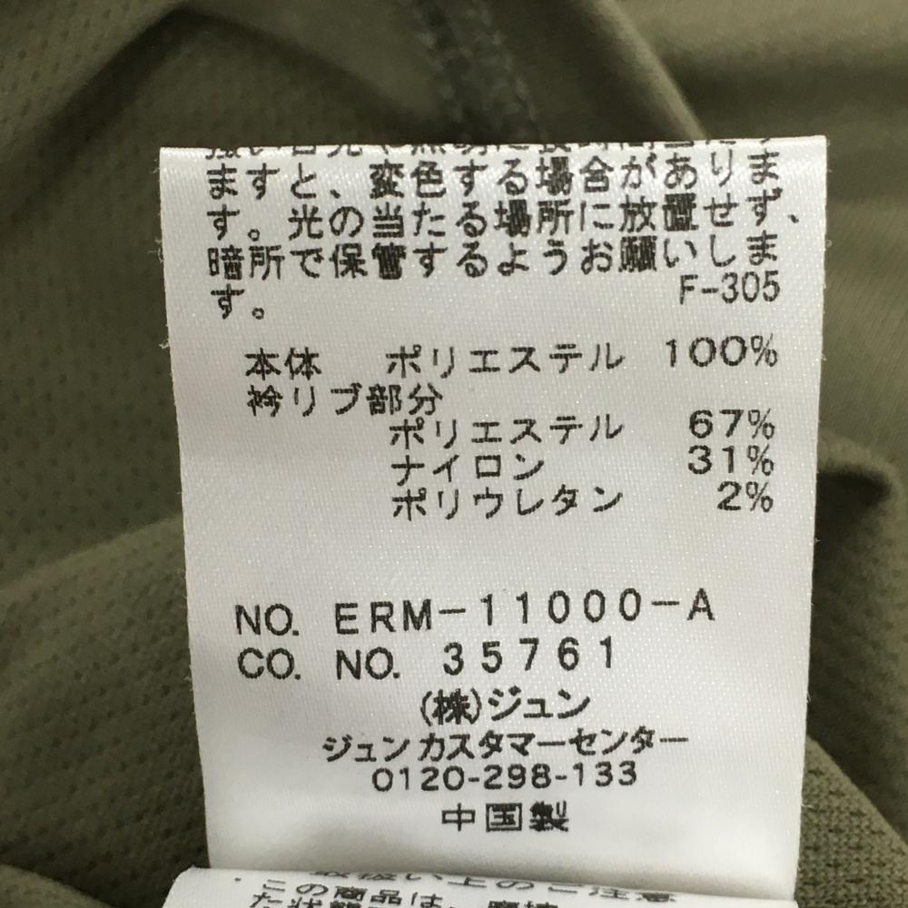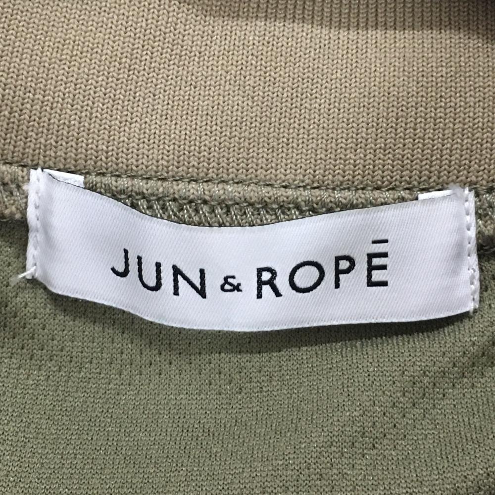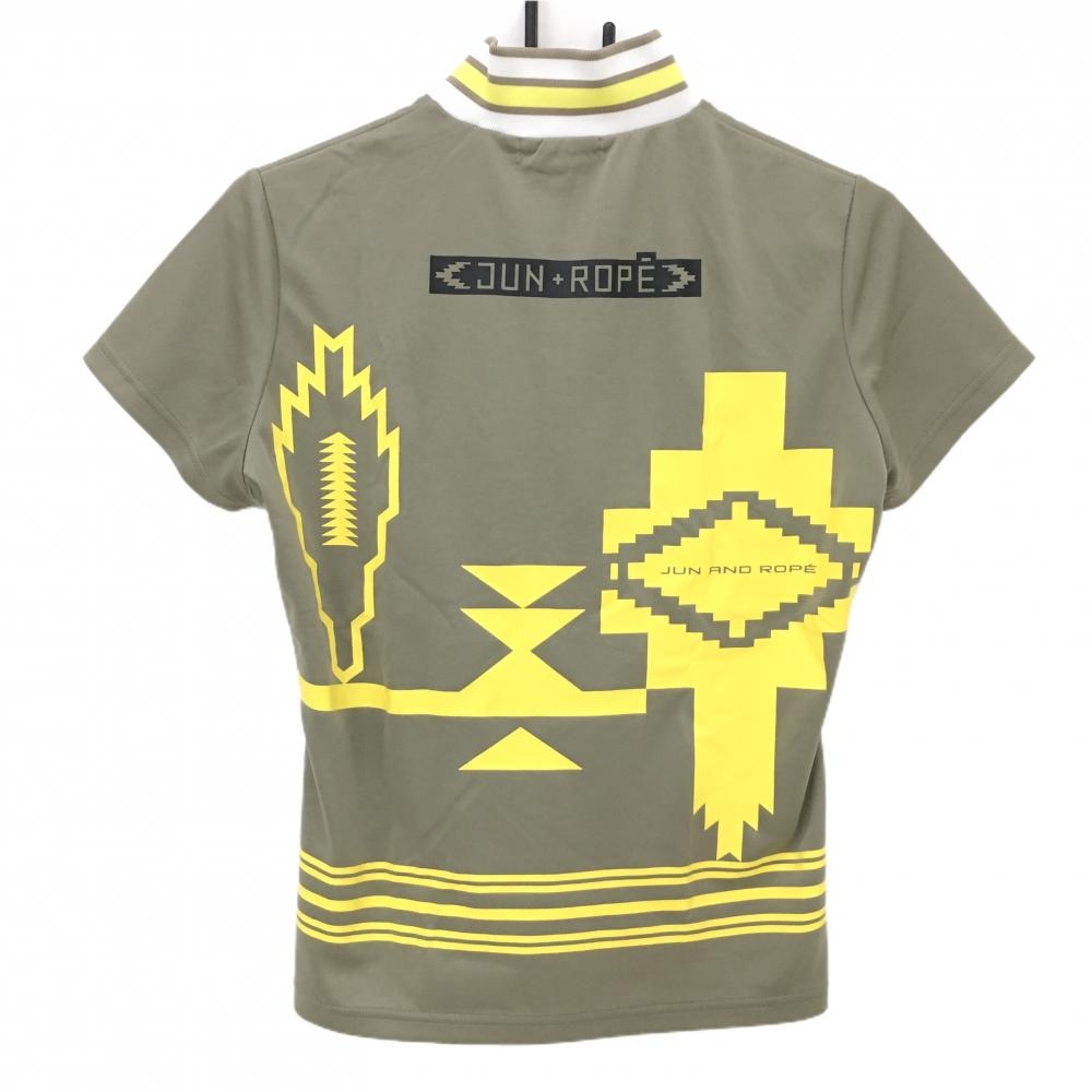 【超美品】ジュンアンドロペ 半袖ハイネックシャツ カーキ×イエロー 幾何学模様風 ハーフジップ レディース M ゴルフウェア JUN&ROPE