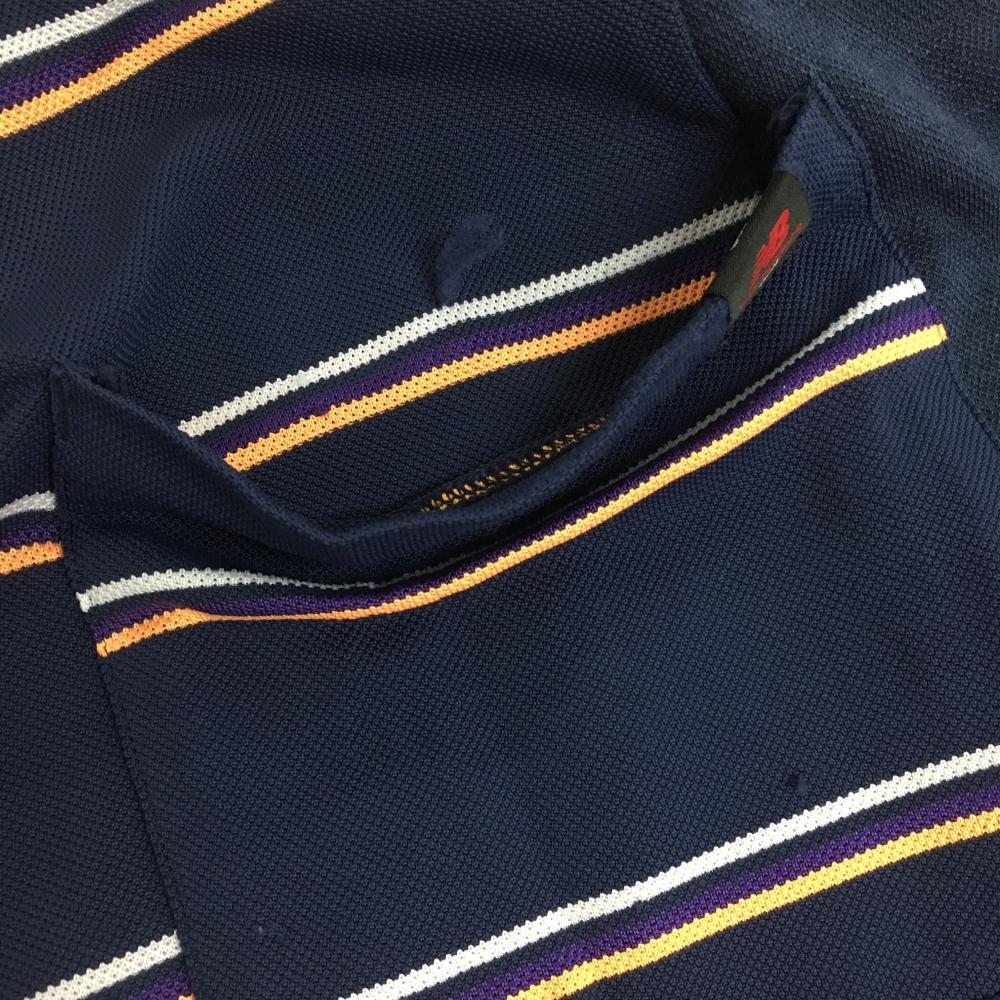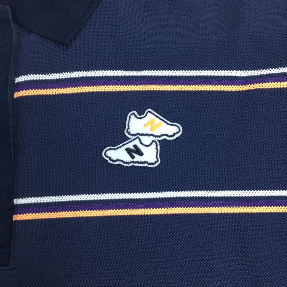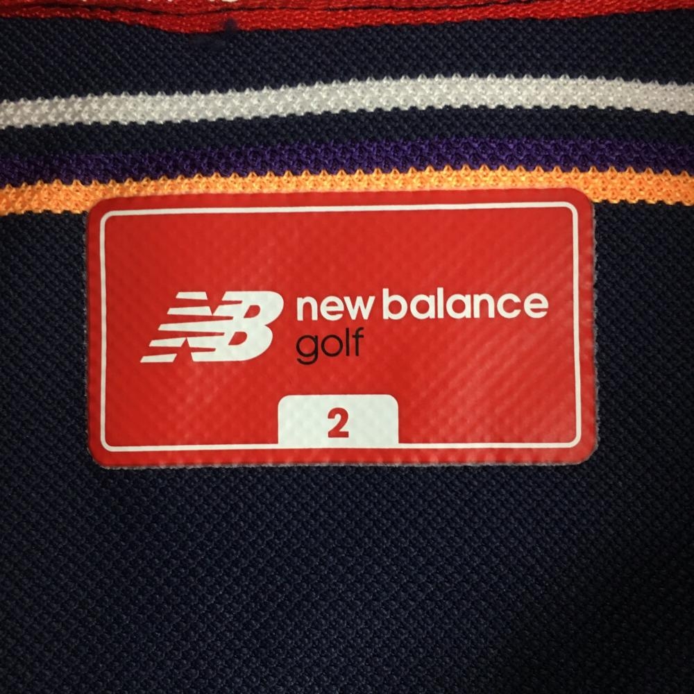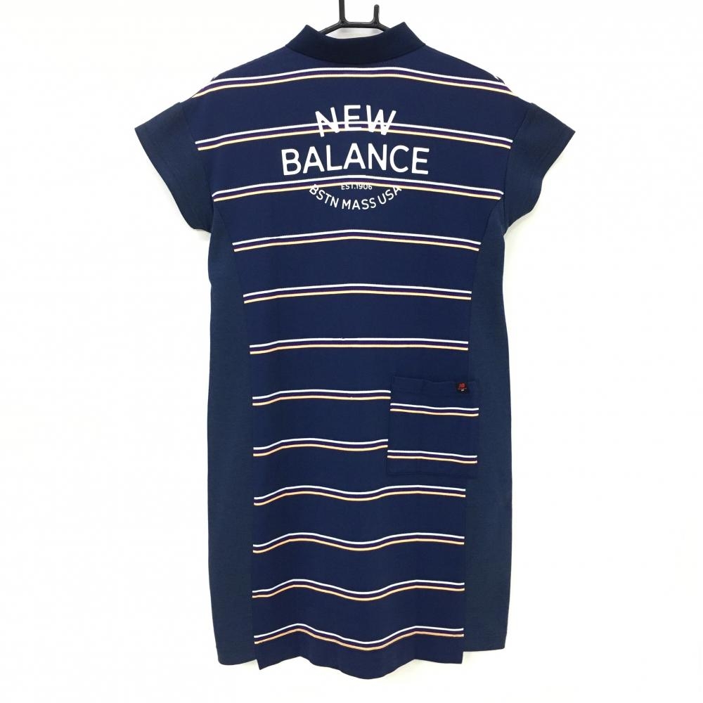 ニューバランスゴルフ 半袖ポロワンピース ネイビー×オレンジ ボーダー スニーカーワッペン レディース 2(L) ゴルフウェア New Balance