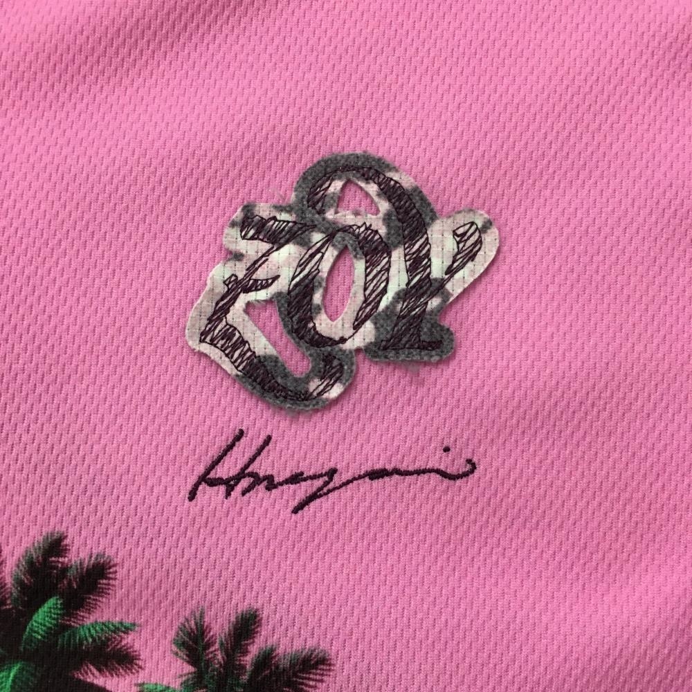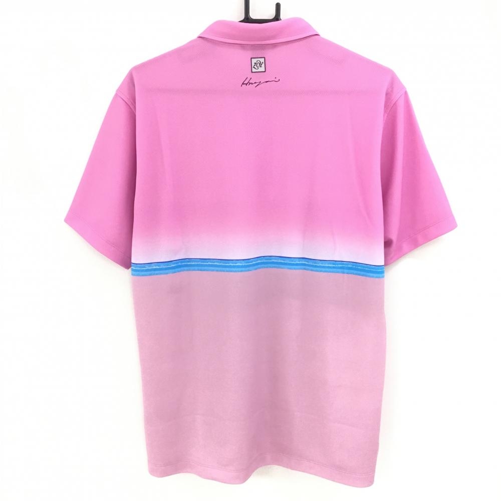 【超美品】ゾーイ 半袖ポロシャツ ピンクパープル グラデーション ヤシの木 ボタンダウン メンズ 3(L) ゴルフウェア ZOY