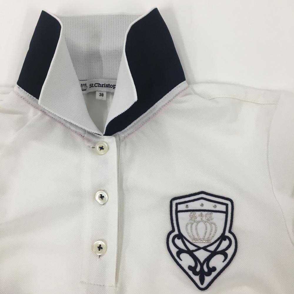 【超美品】セントクリストファー 半袖ポロシャツ 白 前立て内側トリコロール レディース 38 ゴルフウェア St.Christopher