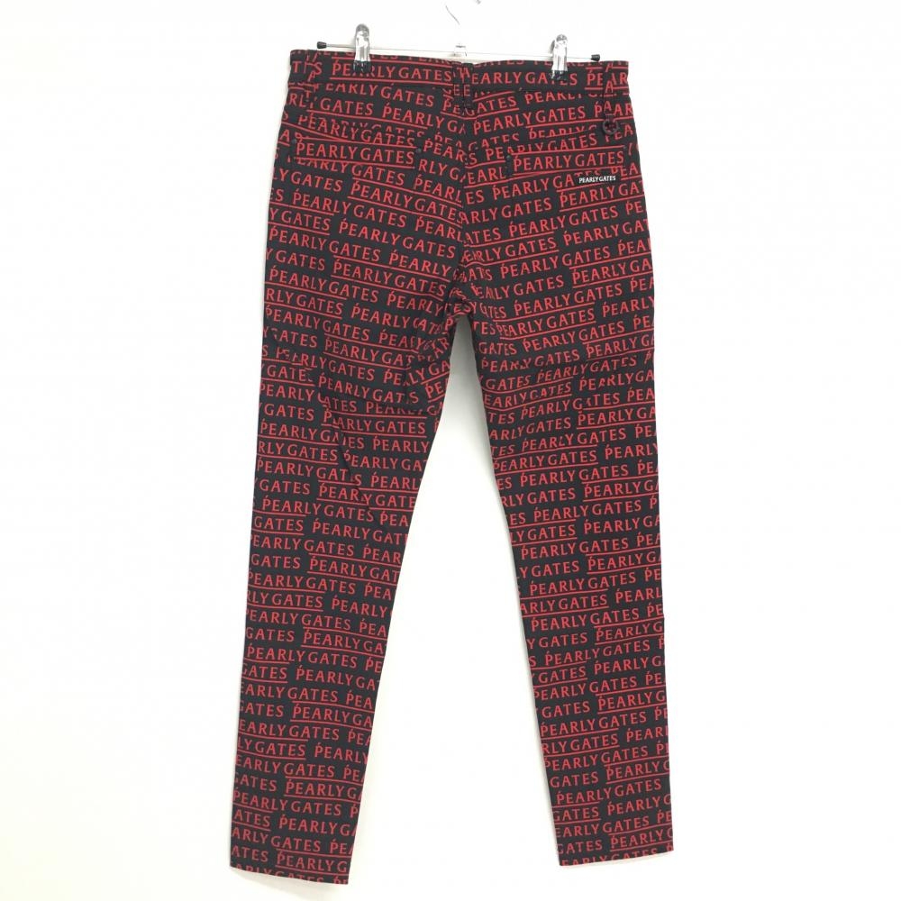 【新品】パーリーゲイツ パンツ 黒×レッド ロゴ総柄 ストレッチ メンズ 5(L) ゴルフウェア PEARLY GATES