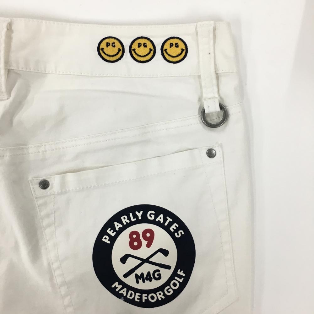 パーリーゲイツ パンツ 白 ニコちゃん スマイル ティー装着 レディース 1(M) ゴルフウェア PEARLY GATES