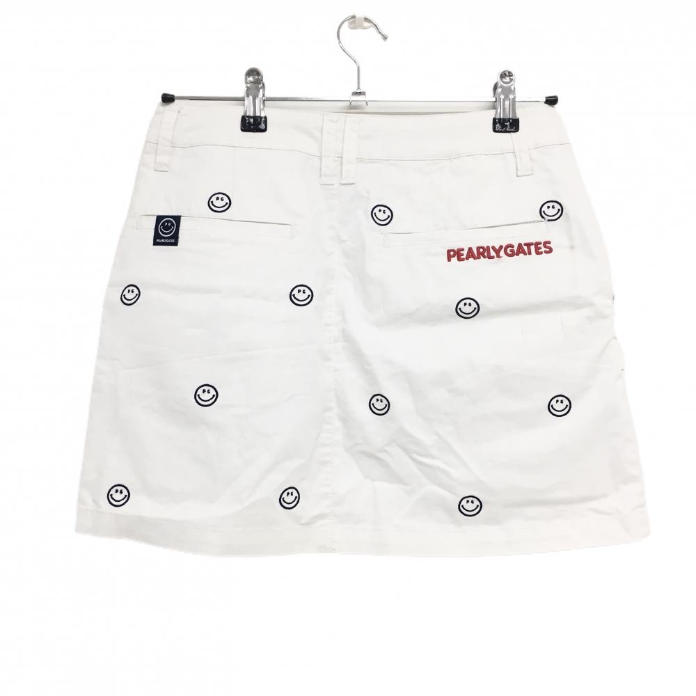 パーリーゲイツ スカート 白×ネイビー ニコちゃん総柄 スマイル レディース 0(S) ゴルフウェア PEARLY GATES