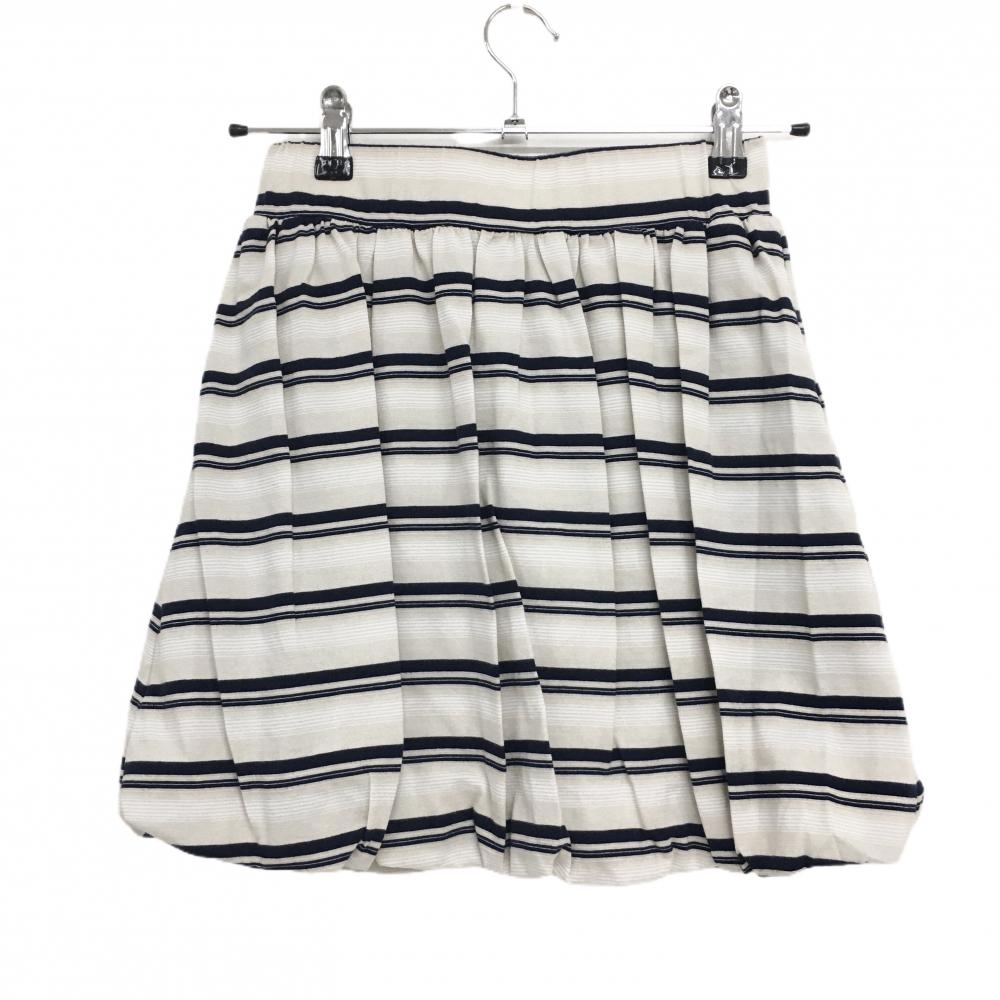 【美品】フィドラ スカート ライトベージュ×ネイビー ボーダー バルーン ウエストゴム レディース XS/TP ゴルフウェア FIDRA