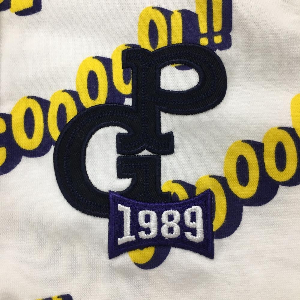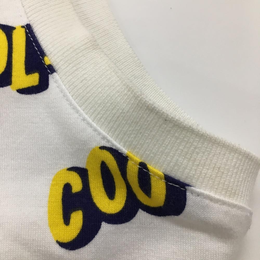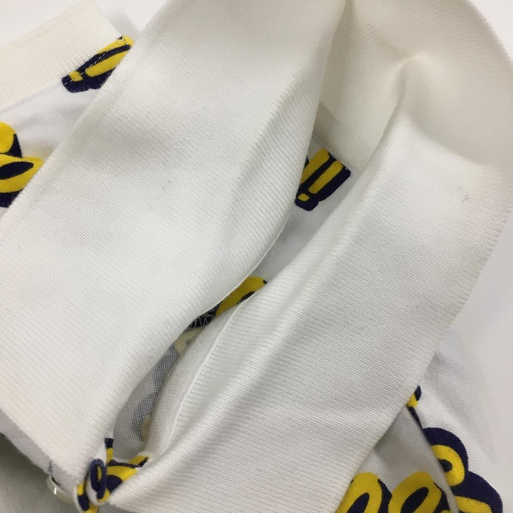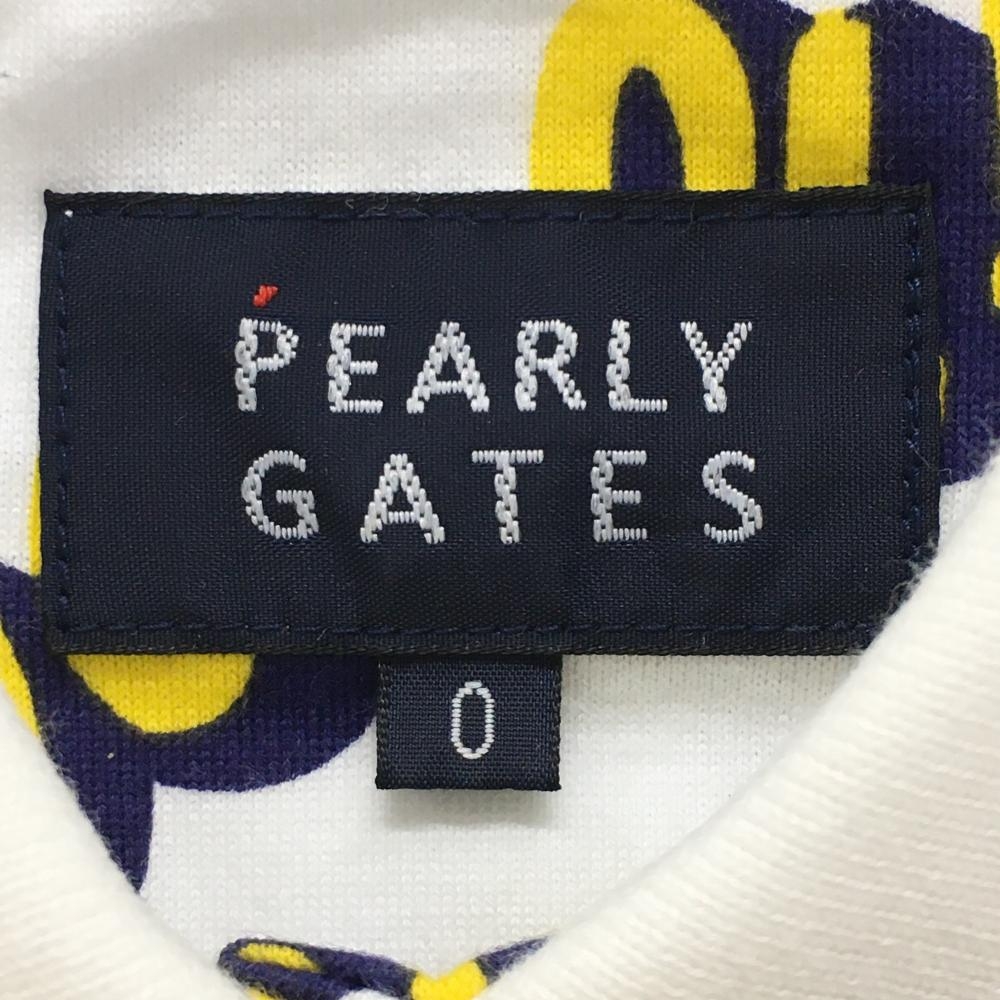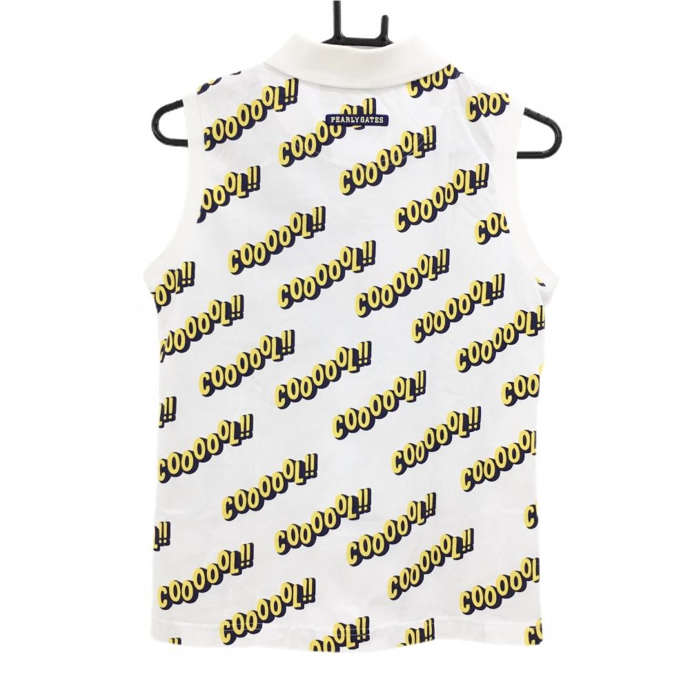 パーリーゲイツ ノースリーブポロシャツ 白×イエロー 英字総柄 レディース 0(S) ゴルフウェア PEARLY GATES