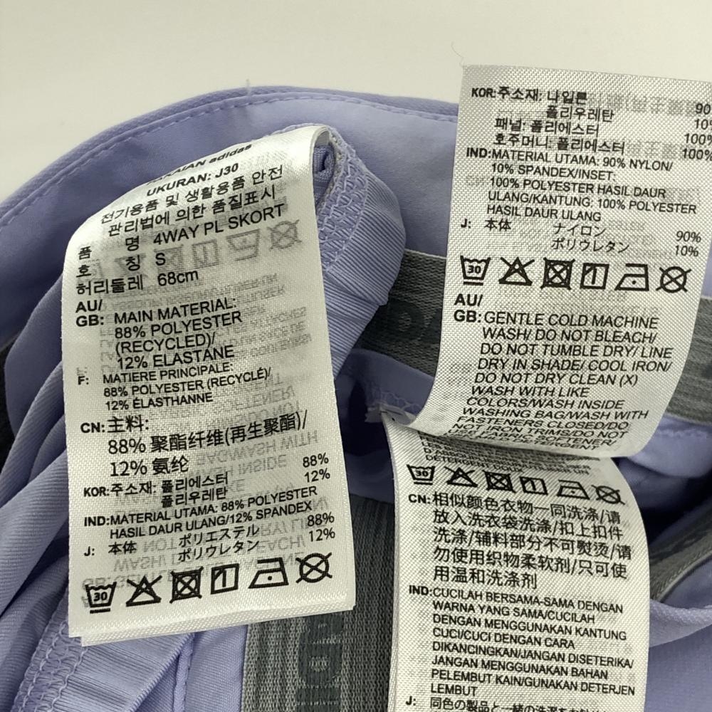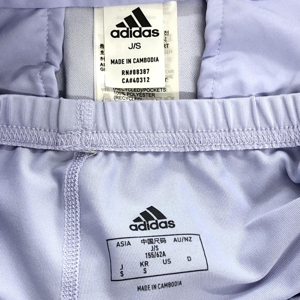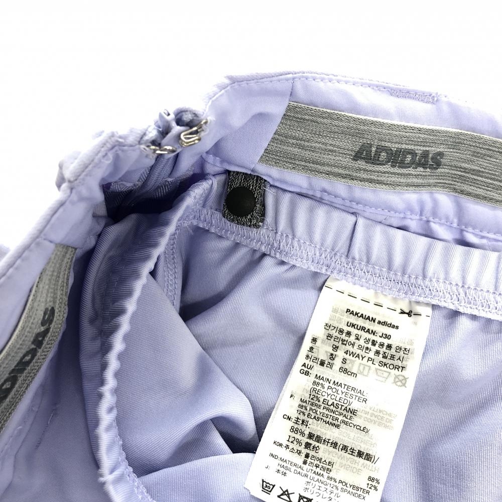 【美品】アディダス スカート ライトパープル 背面裾プリーツ インナーパンツ付 3ライン レディース S ゴルフウェア adidas
