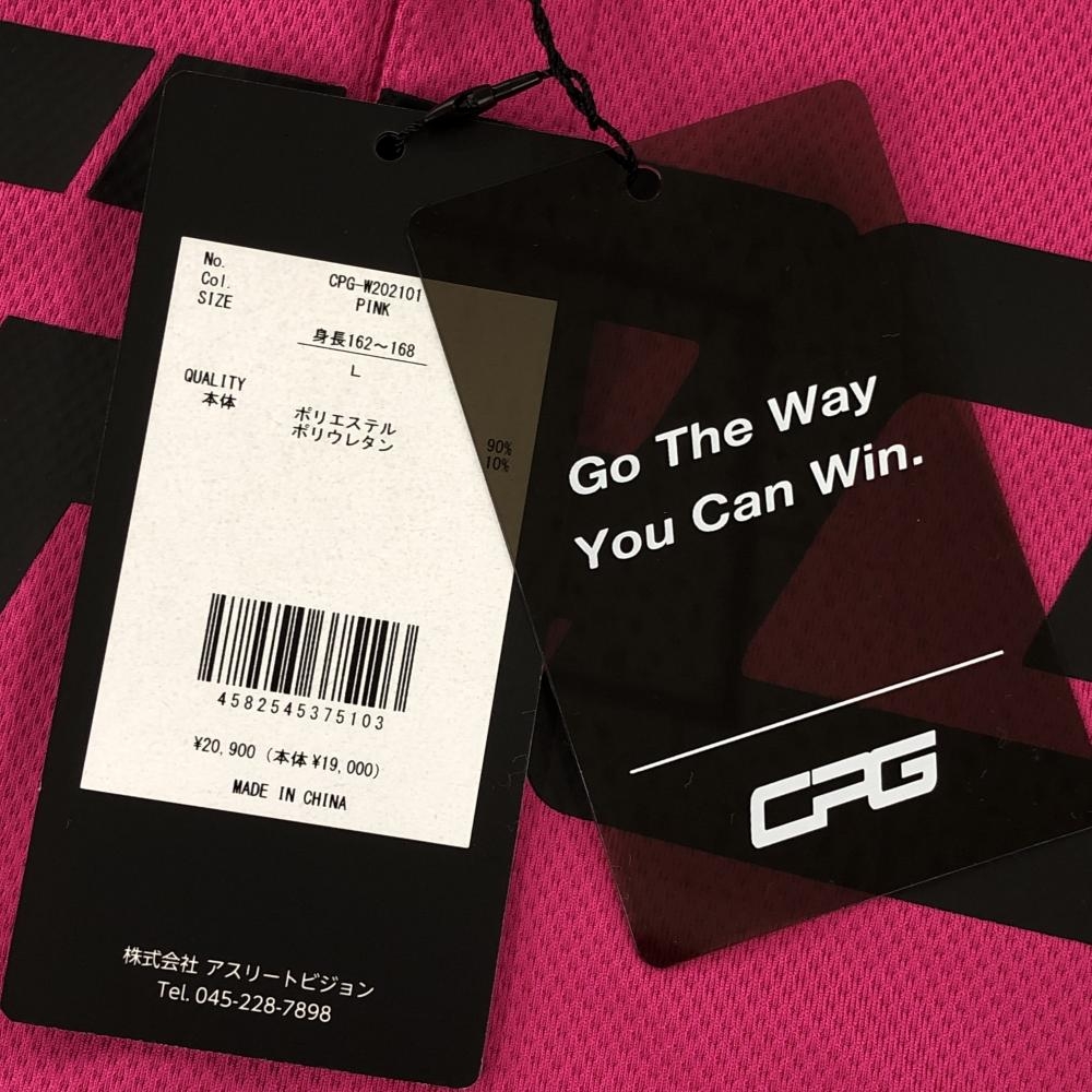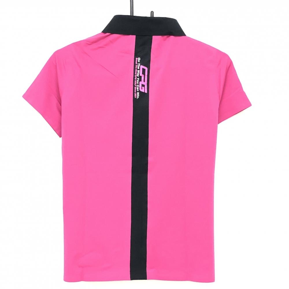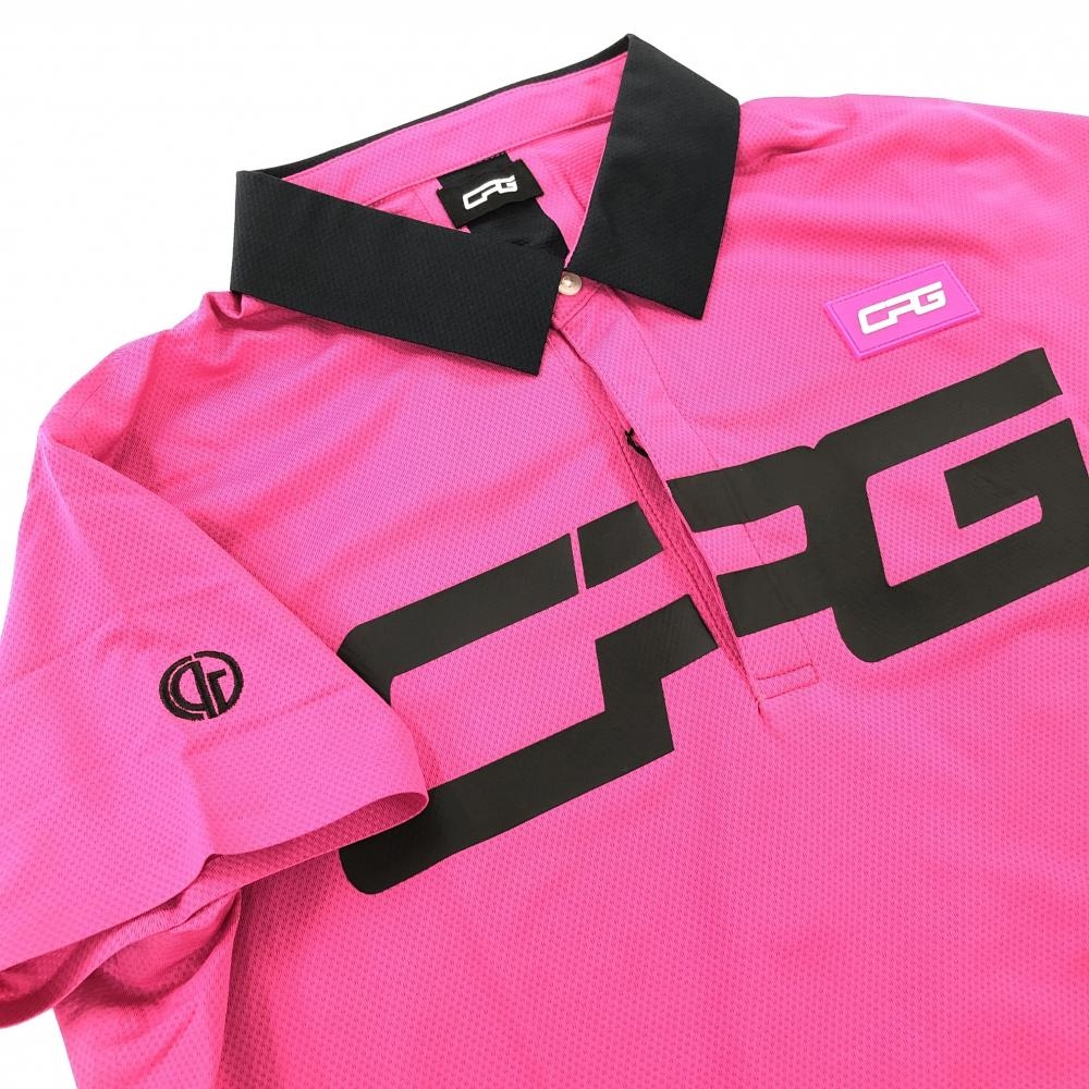【新品】CPG 半袖ポロシャツ ピンク×黒 後ろセンターライン ビッグロゴ レディース L ゴルフウェア CPG