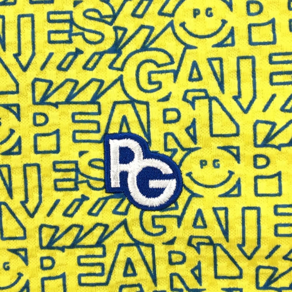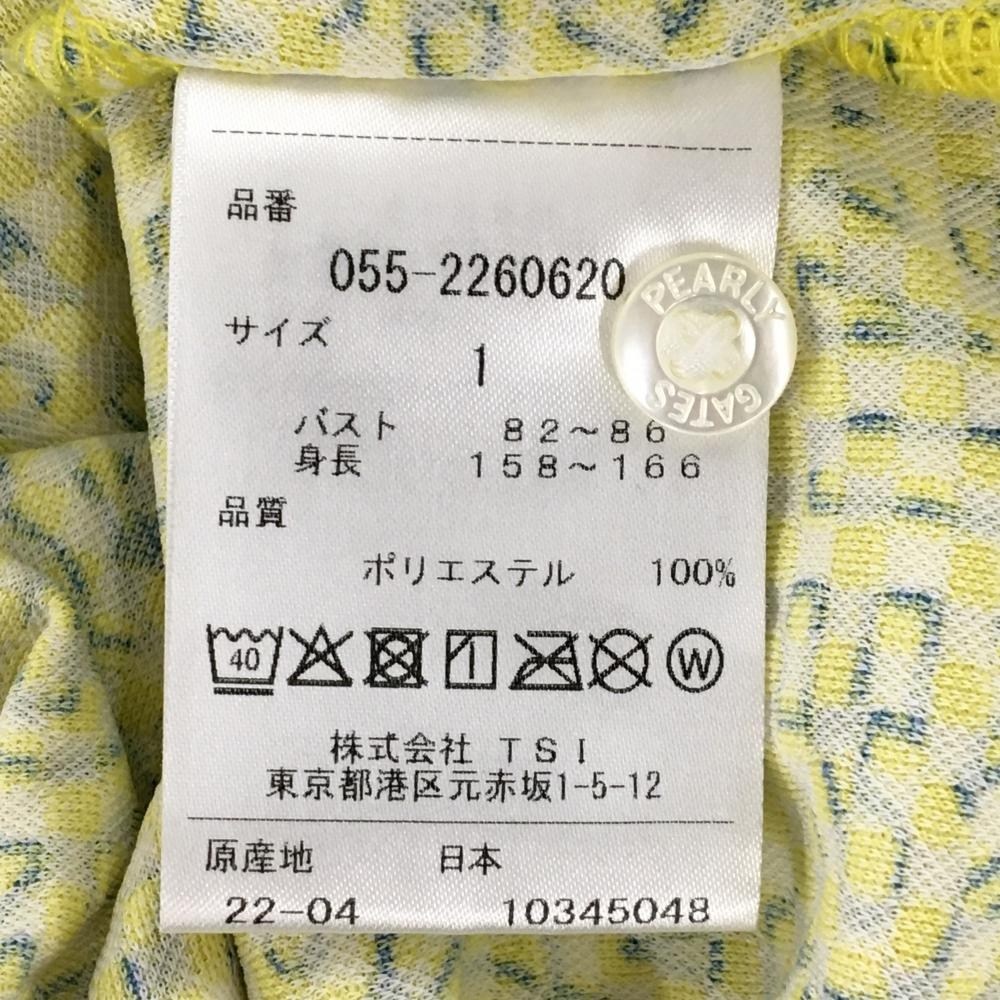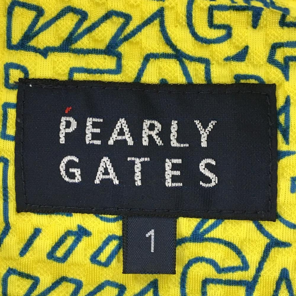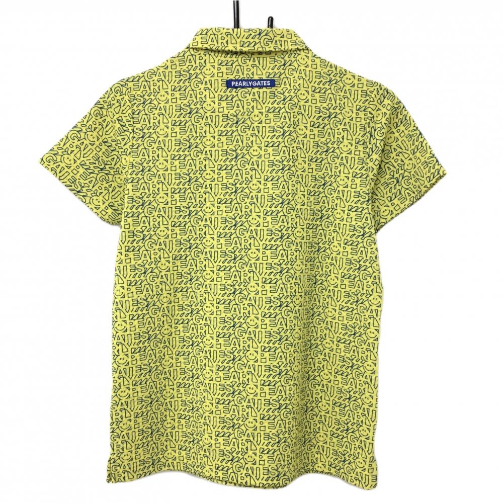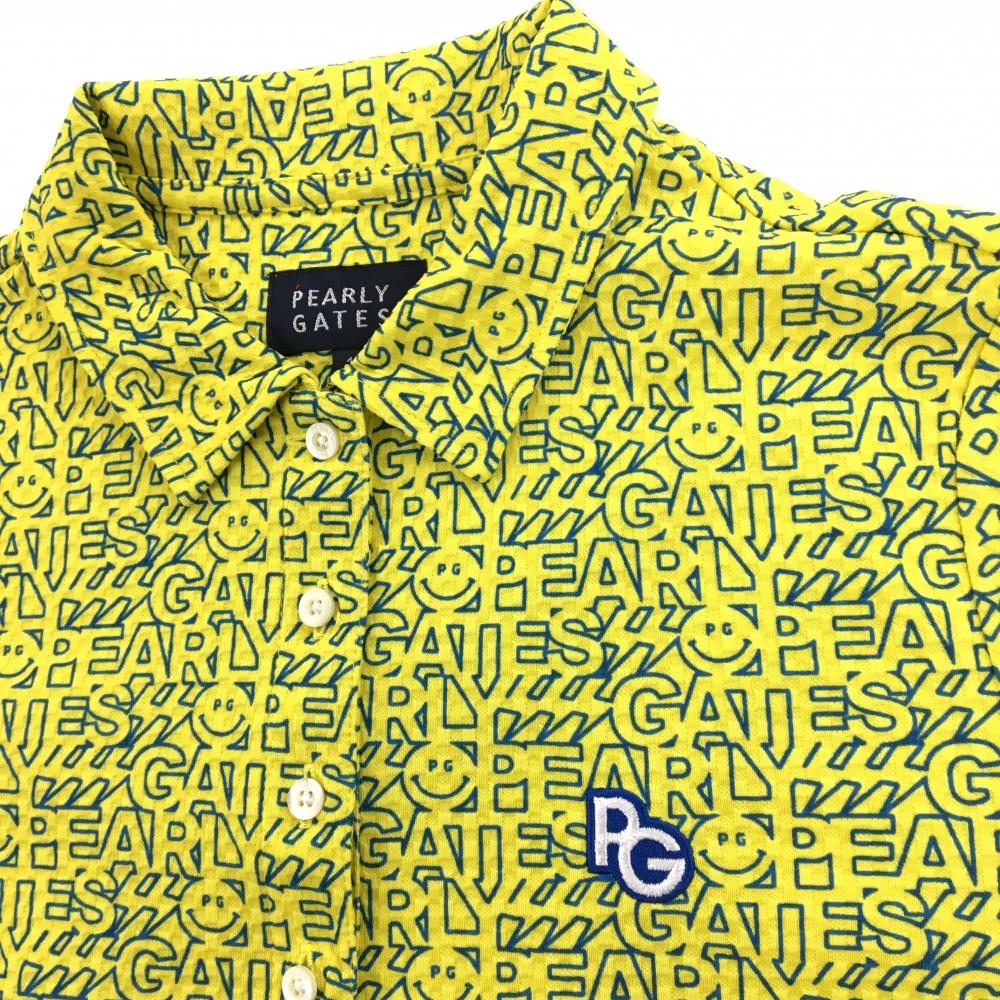 【超美品】パーリーゲイツ 半袖ポロシャツ イエロー×ブルー ロゴ総柄 ニコちゃん総柄 レディース 1(M) ゴルフウェア PEARLY GATES