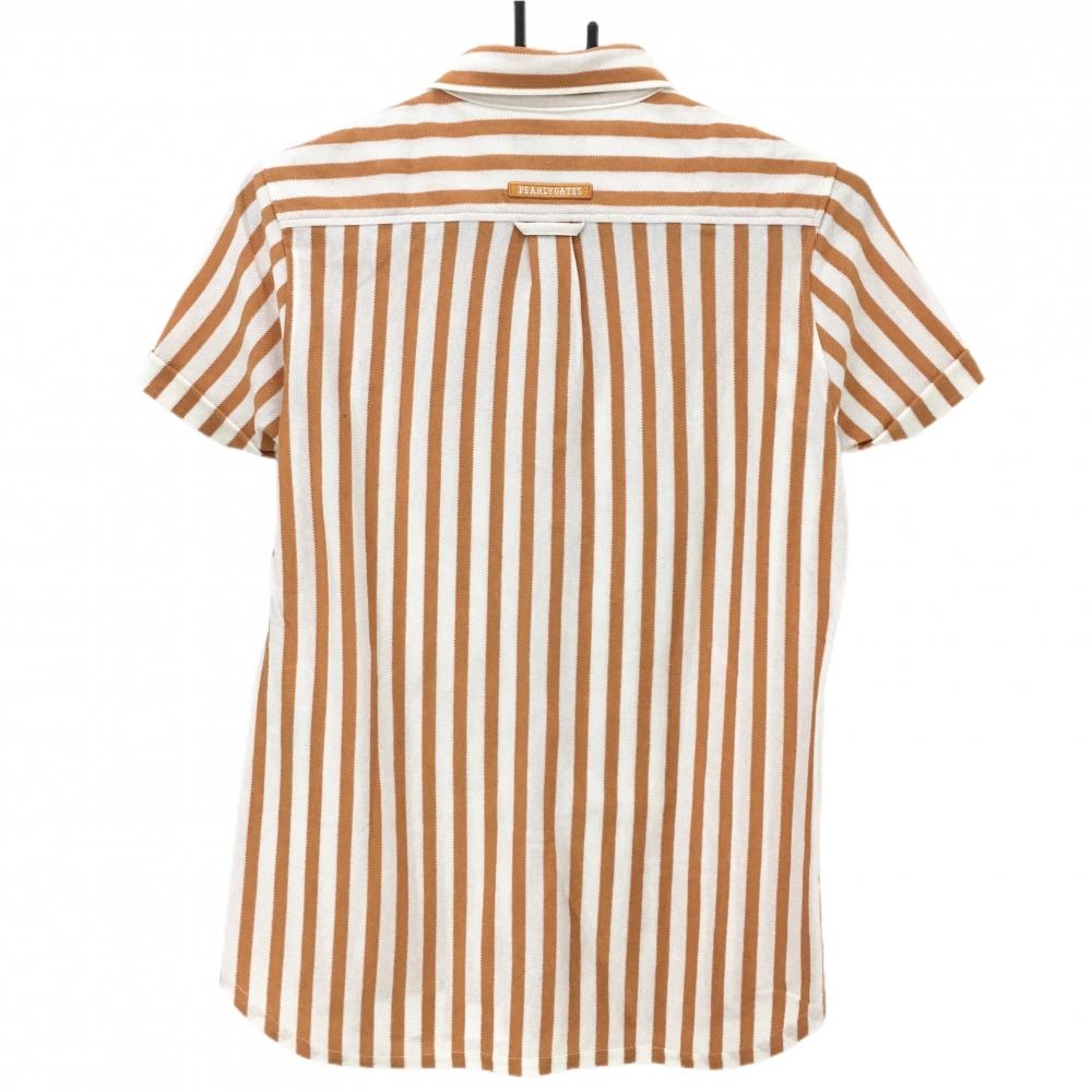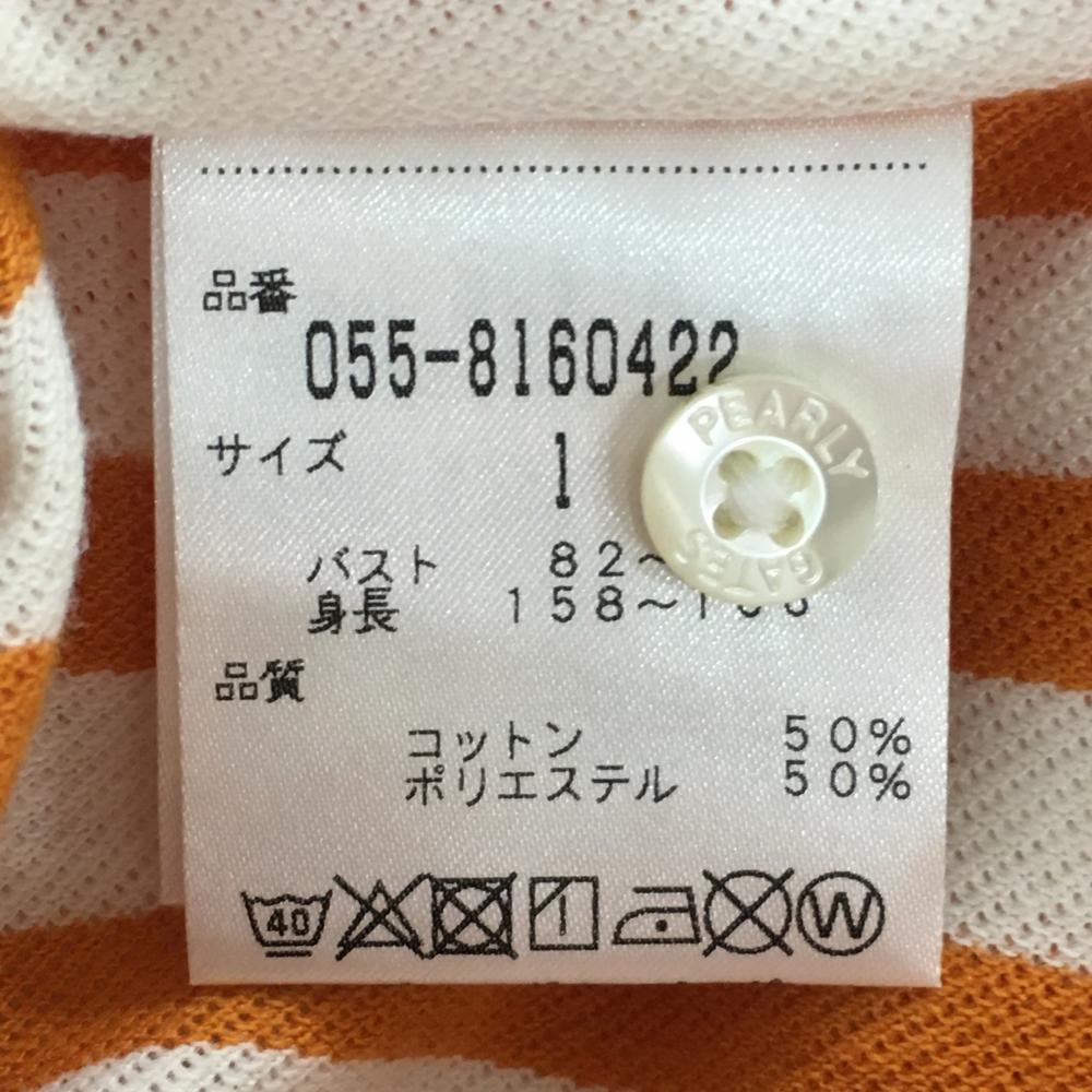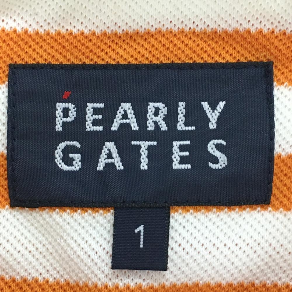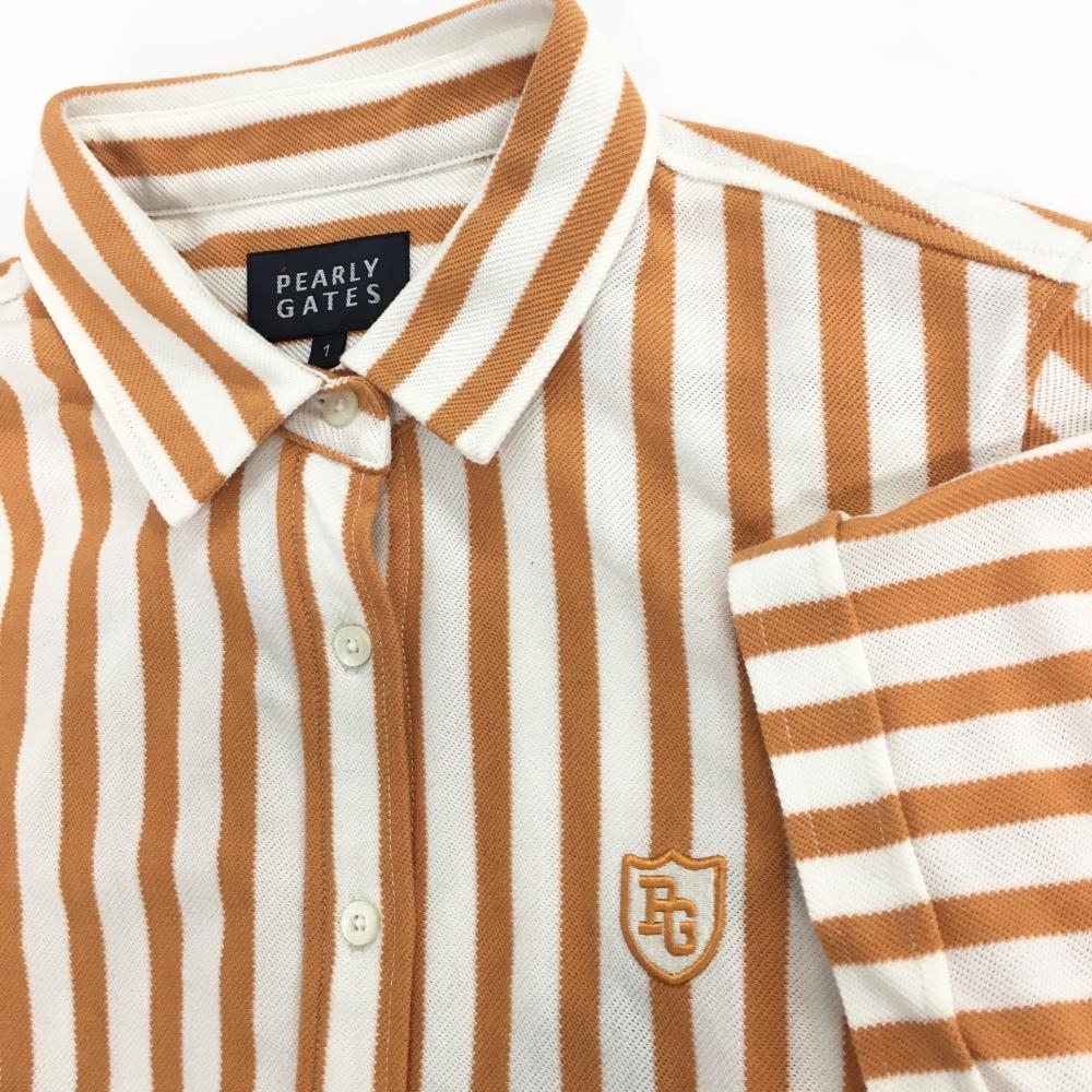 【美品】パーリーゲイツ 半袖シャツ 白×オレンジ ストライプ レディース 1(M) ゴルフウェア PEARLY GATES