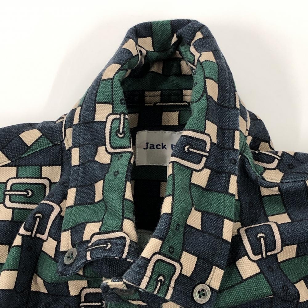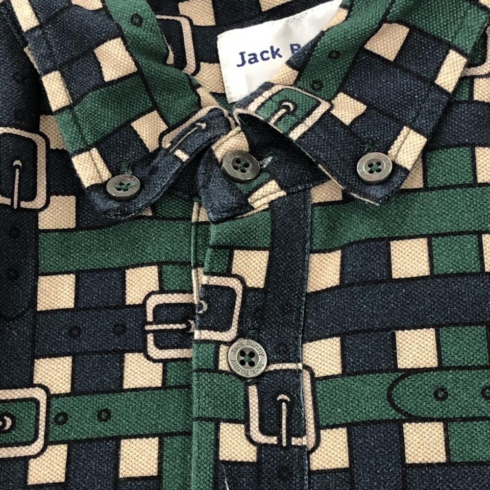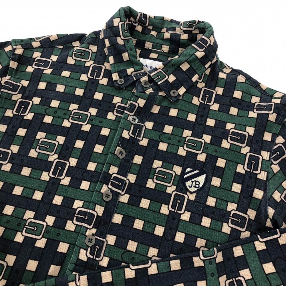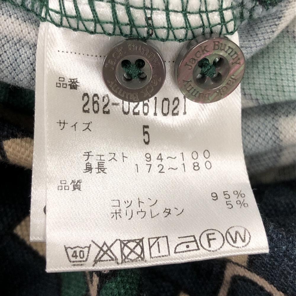 ジャックバニー 長袖ポロシャツ グリーン×ネイビー ベルト柄 メンズ 5(L) ゴルフウェア Jack Bunny