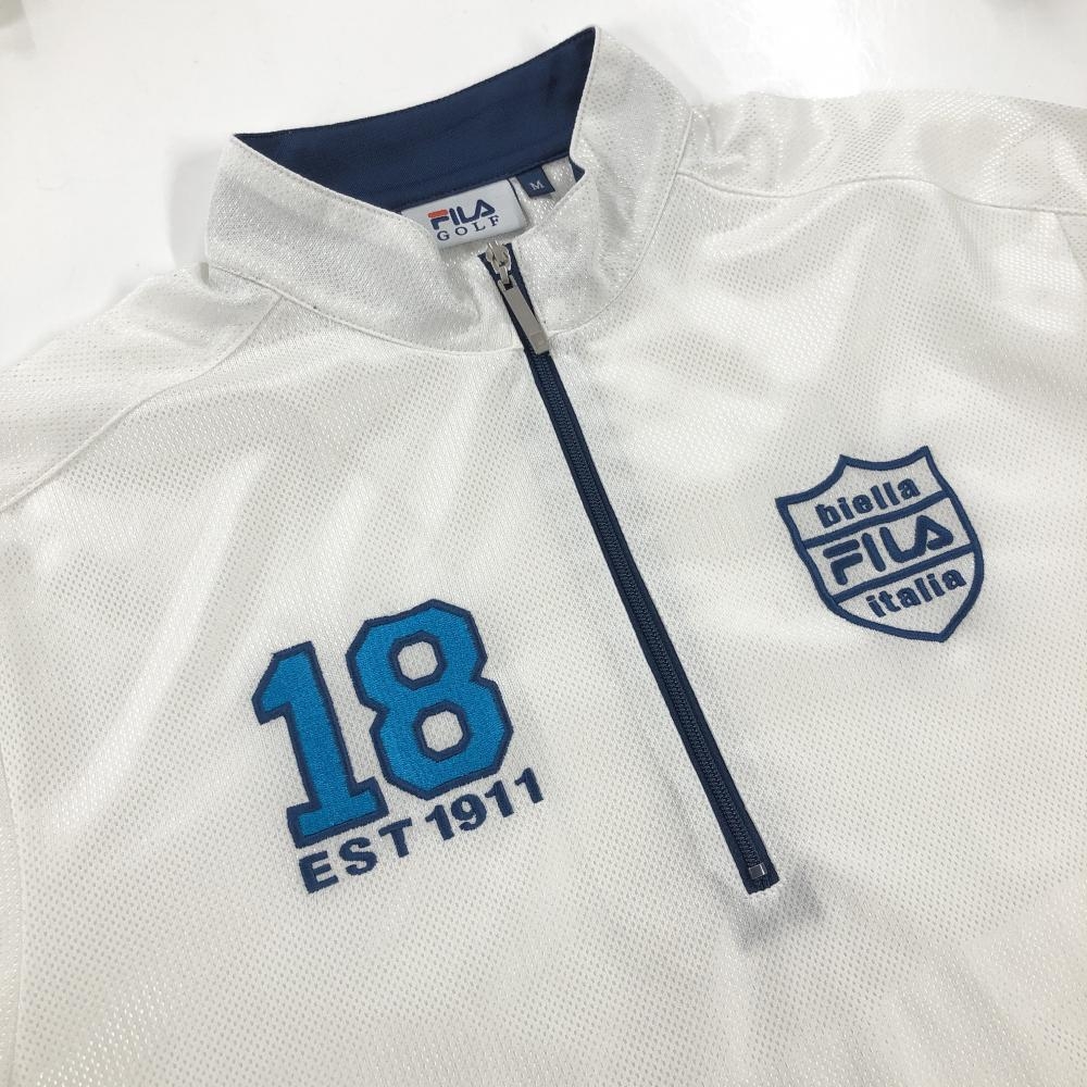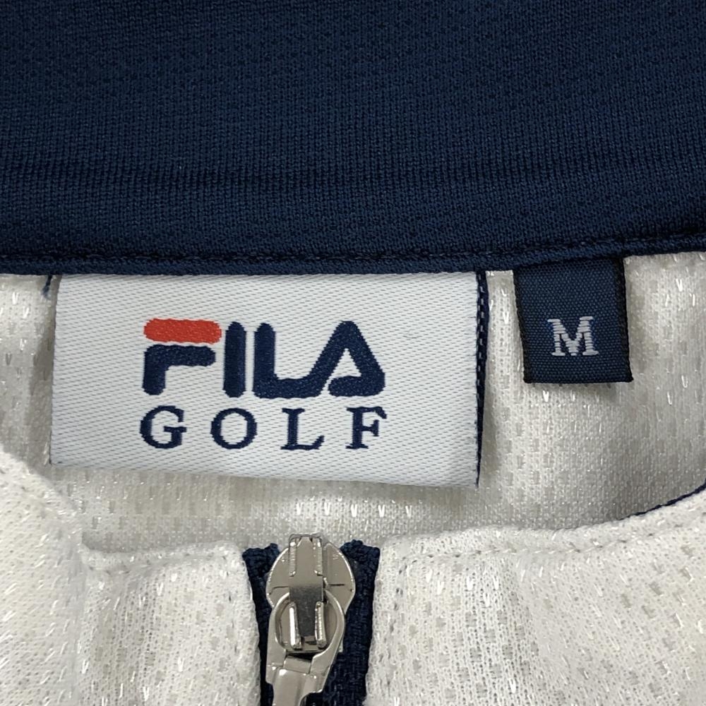 【美品】フィラゴルフ 半袖ハイネックシャツ 白×ネイビー ハーフジップ 胸ロゴ メンズ M ゴルフウェア FILA GOLF