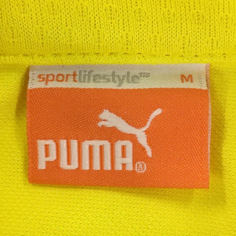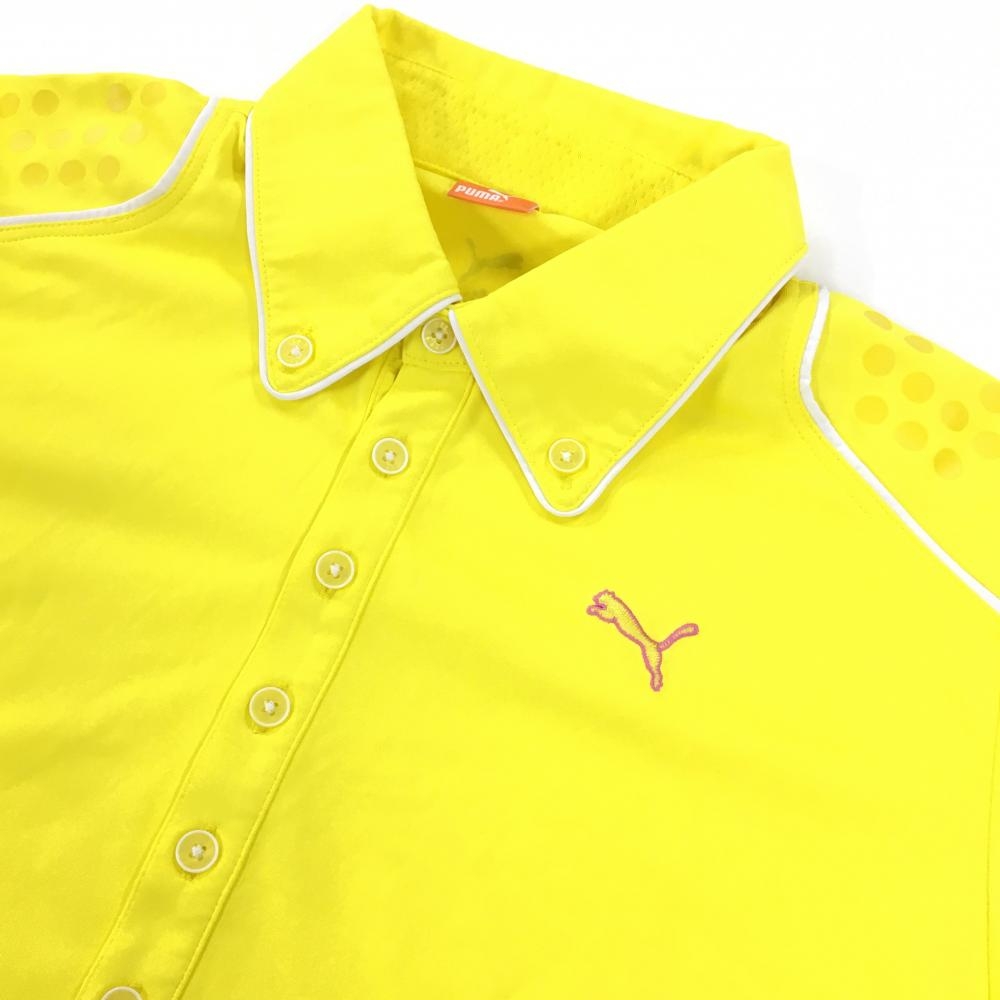 【超美品】プーマ 半袖ポロシャツ イエロー×白 肩パイピンクライン ボタンダウン メンズ M ゴルフウェア PUMA