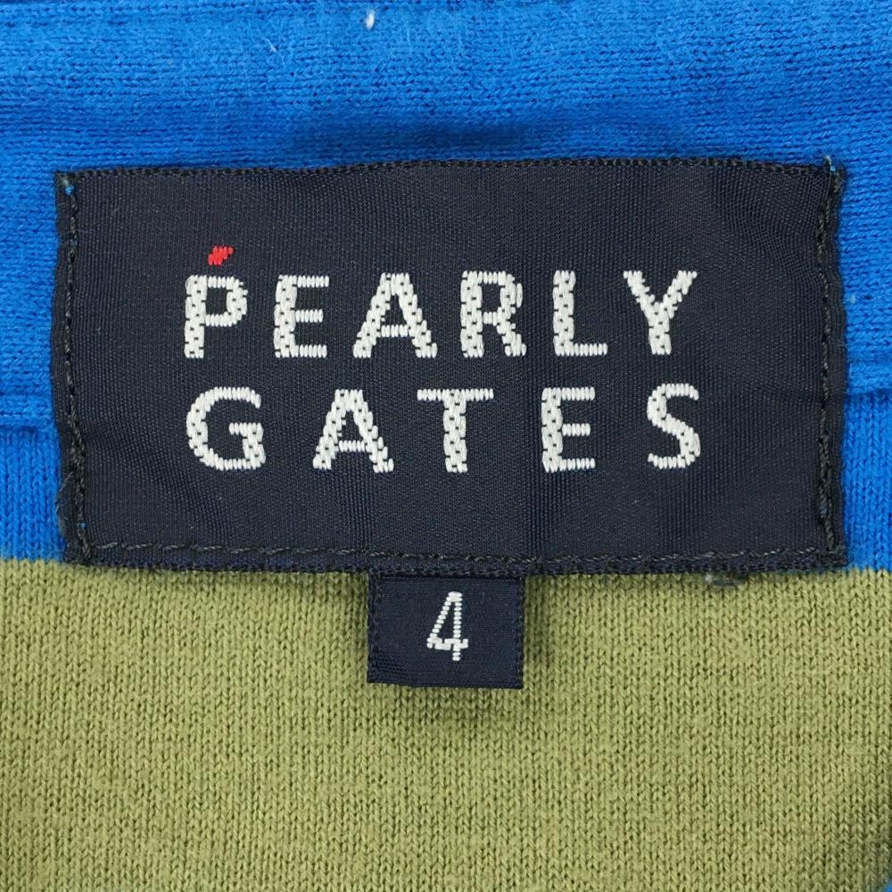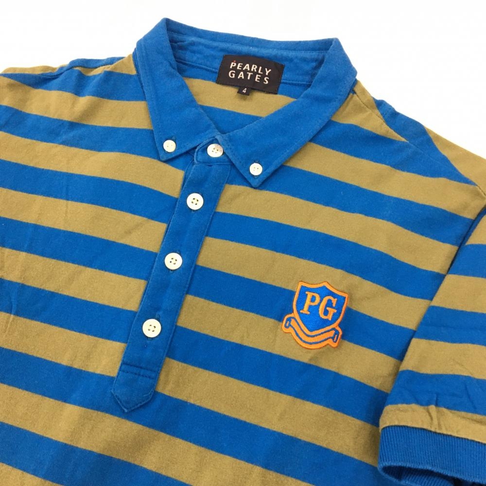 パーリーゲイツ 半袖ポロシャツ ブルー×カーキ ボーダー ボタンダウン メンズ 4(M) ゴルフウェア PEARLY GATES