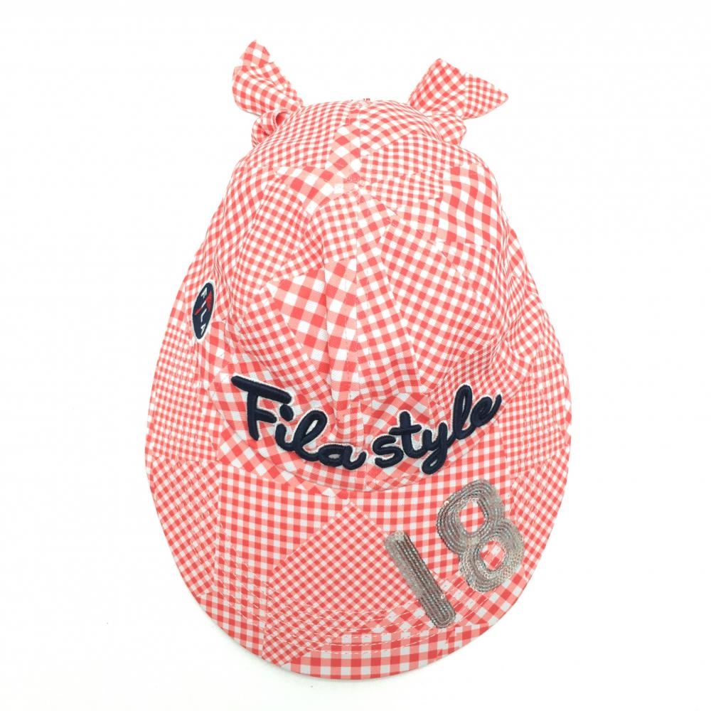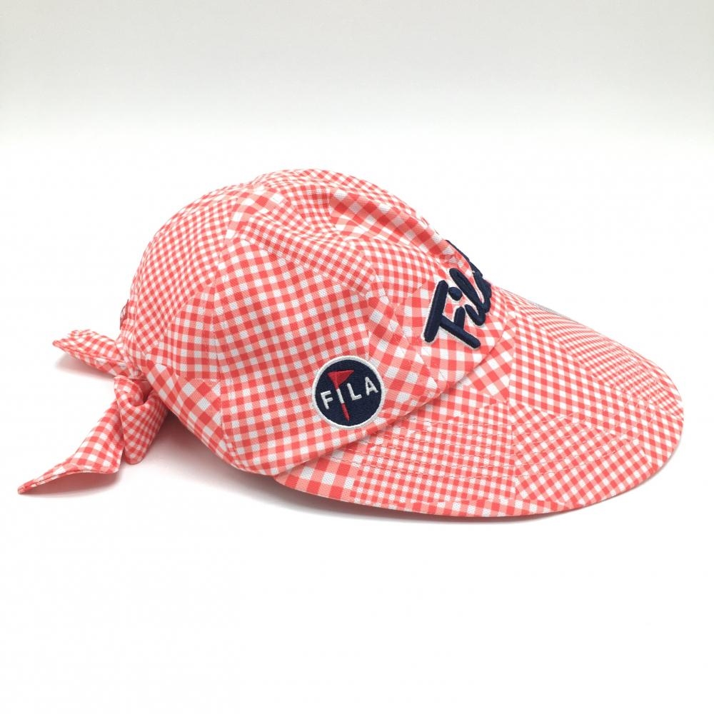 【超美品】フィラゴルフ つば広キャップ レッド×白 チェック柄 立体刺しゅう レディース ゴルフウェア FILA GOLF