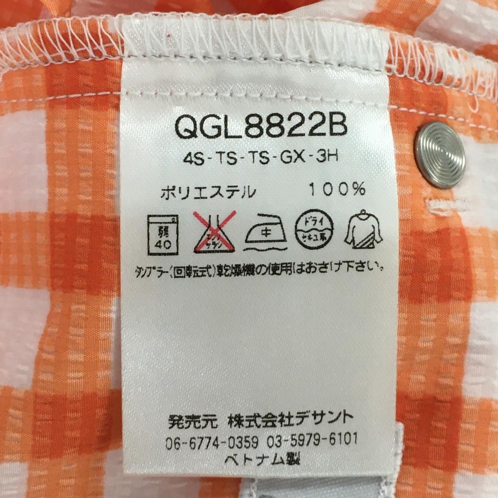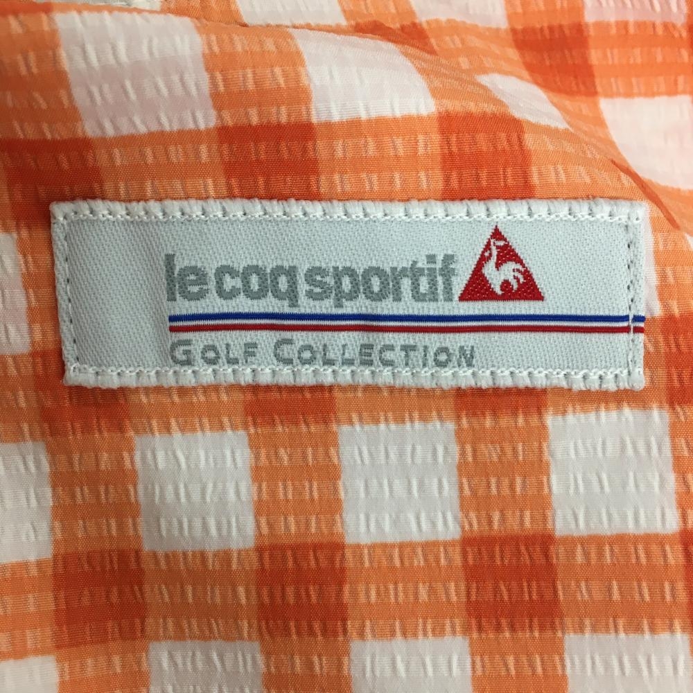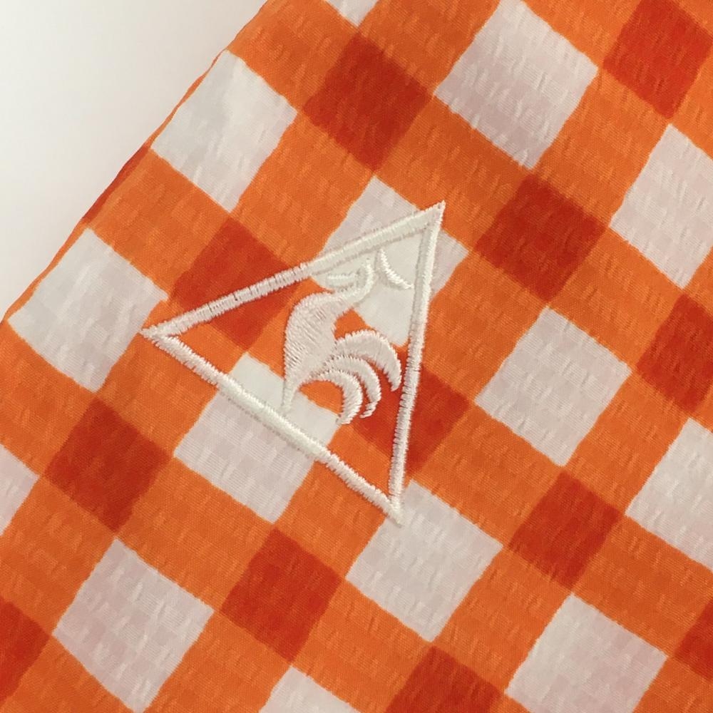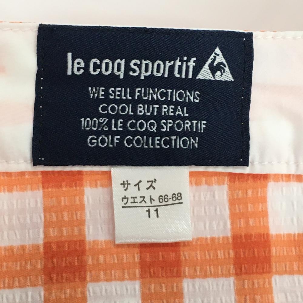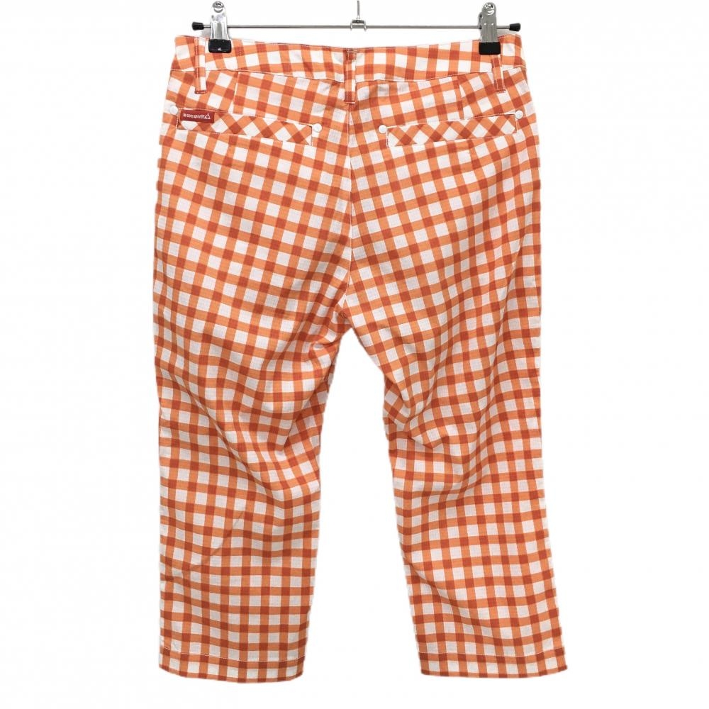 【超美品】ルコックゴルフ 半端丈パンツ 白×オレンジ チェック サッカー生地 ストレッチ 薄手 レディース 11 ゴルフウェア le coq sportif