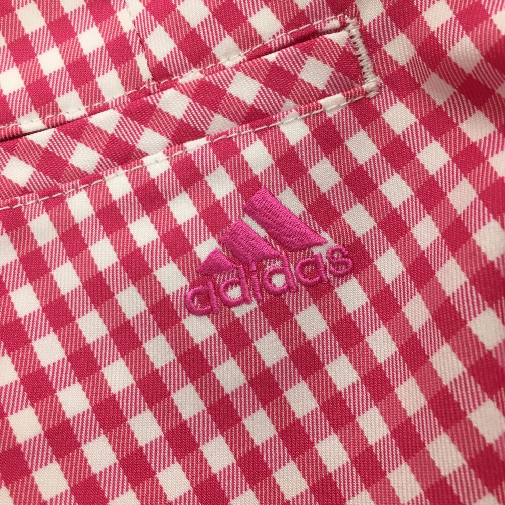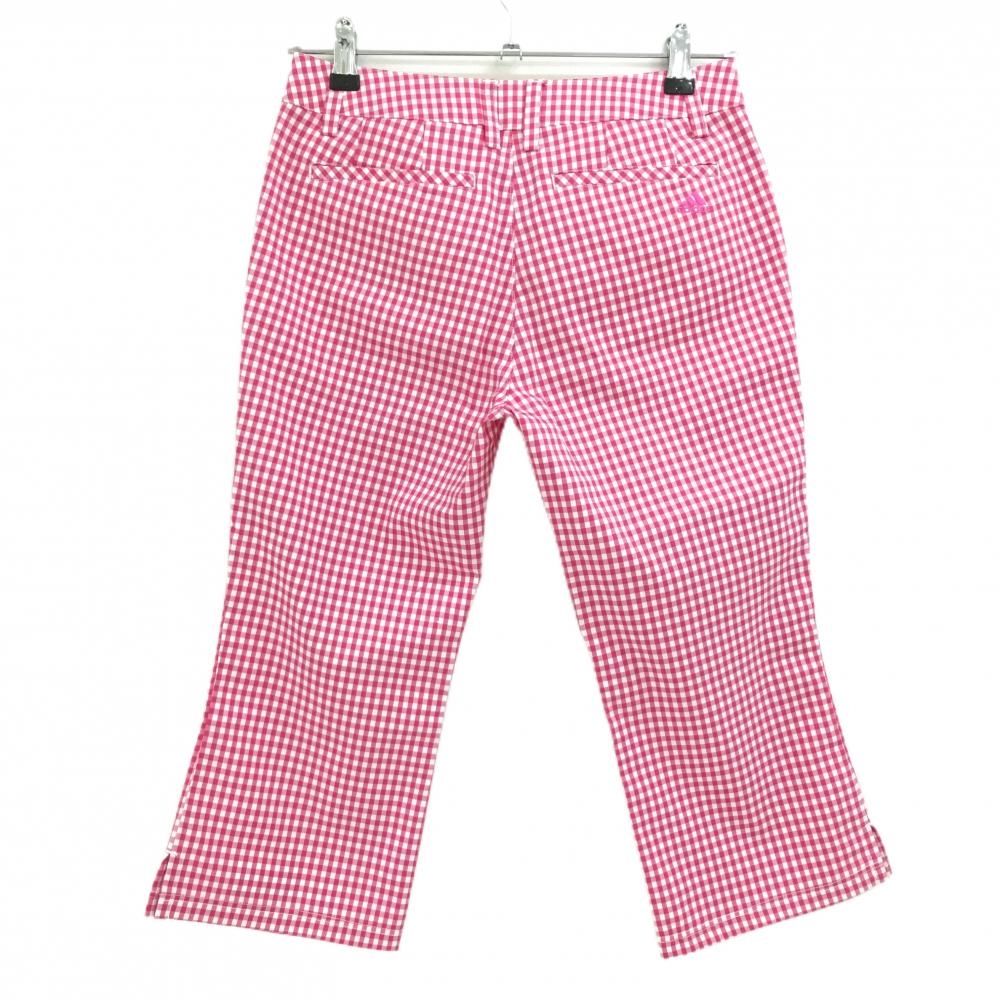 【美品】アディダス 半端丈パンツ ピンク×白 チェック レディース S/P ゴルフウェア adidas