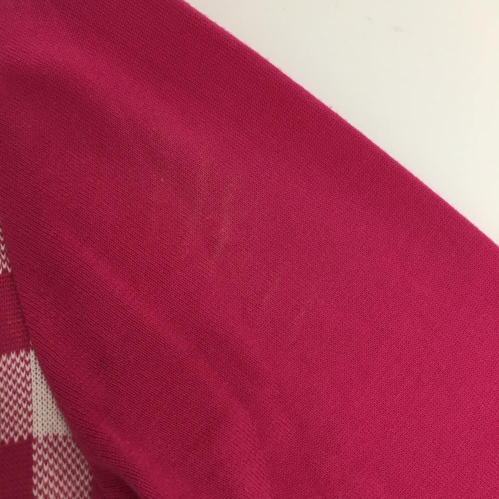 マンシングウェア ニットジャケット ピンク×白 前身頃チェック 肩レース ロゴ刺しゅう レディース M ゴルフウェア Munsingwear