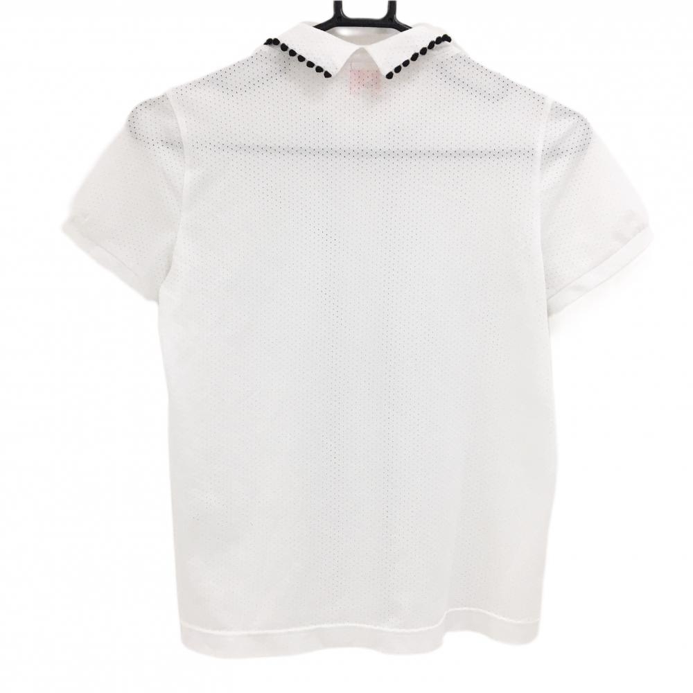 アルチビオ 半袖ポロシャツ 白×黒 メッシュ生地 スキッパー ビーズロゴ レディース 36(S) ゴルフウェア archivio
