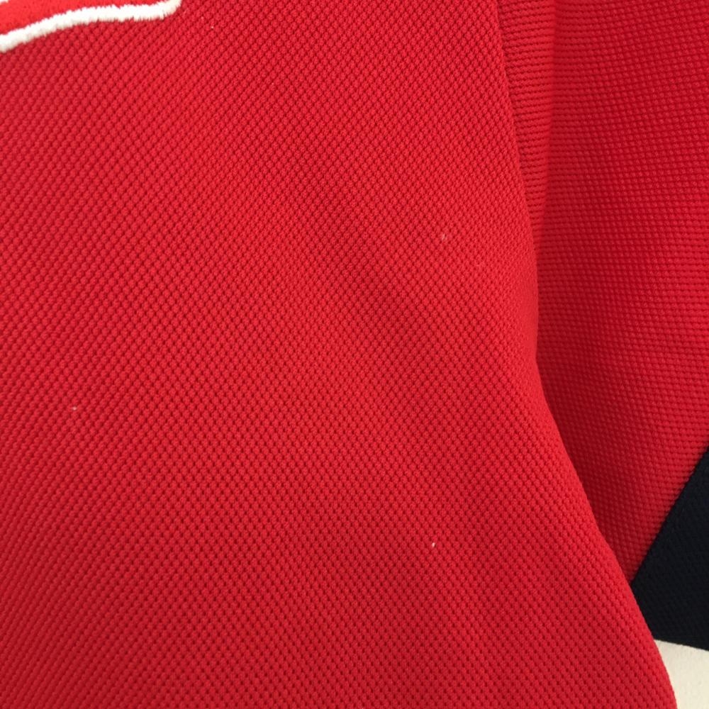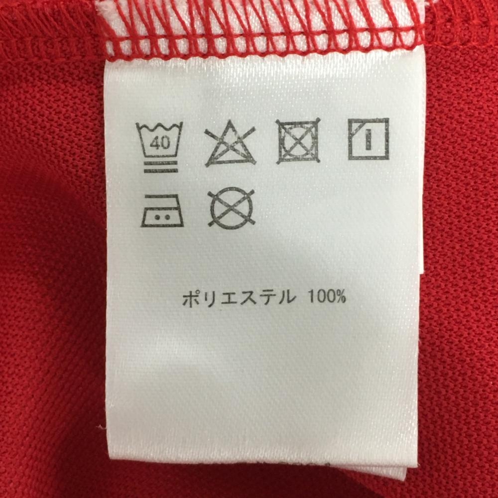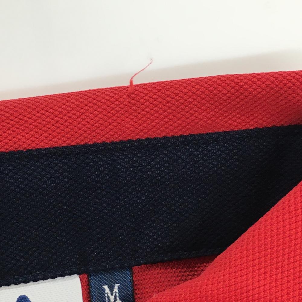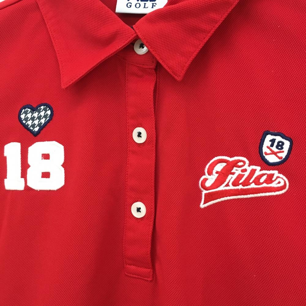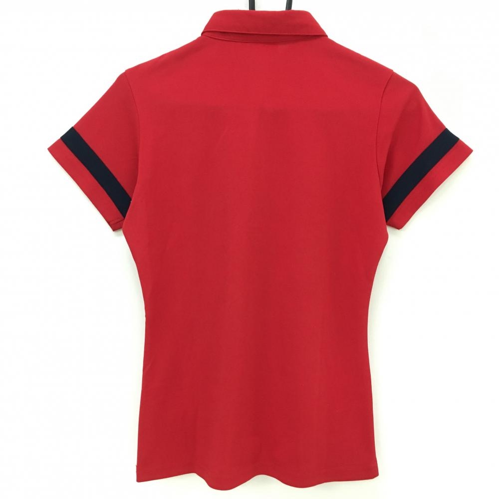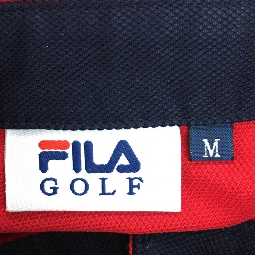 【美品】フィラゴルフ 半袖ポロシャツ レッド×ネイビー 袖ライン 胸元ワッペン レディース M ゴルフウェア FILA GOLF