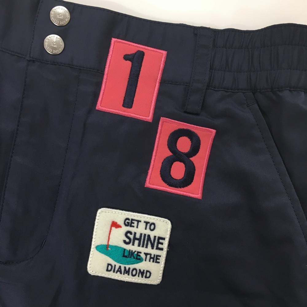 【超美品】ルコックゴルフ スカート ネイビー ナンバーワッペン バックロゴ ウエスト後ろゴム レディース 9 ゴルフウェア le coq sportif
