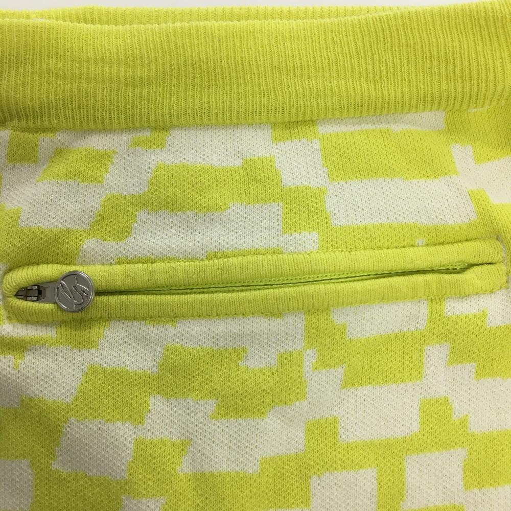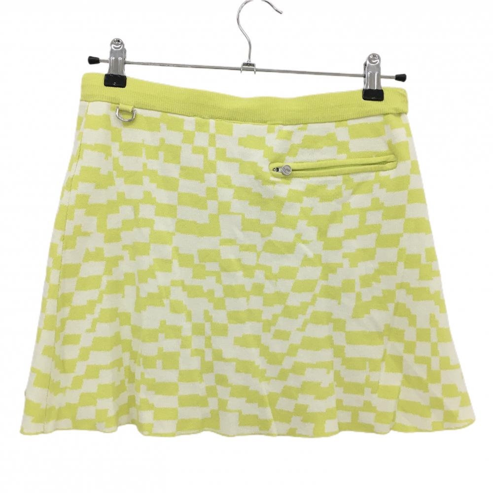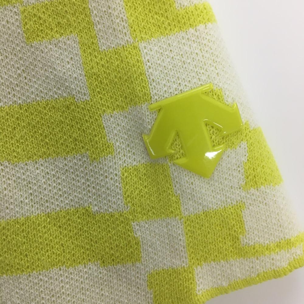 【美品】デサントゴルフ ニットスカート ライムイエロー×白 総柄 ウエストゴム 調節紐 中田英寿 レディース L ゴルフウェア DESCENTE