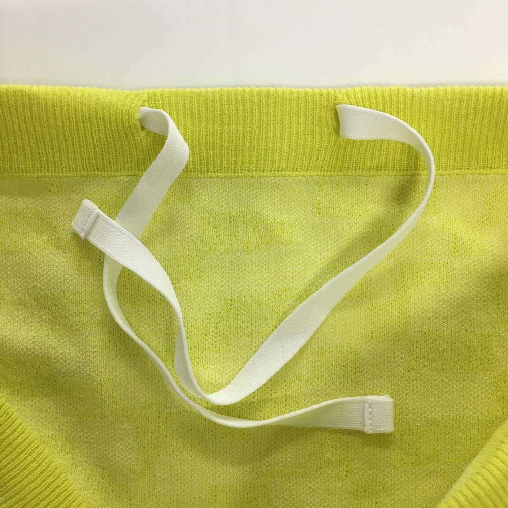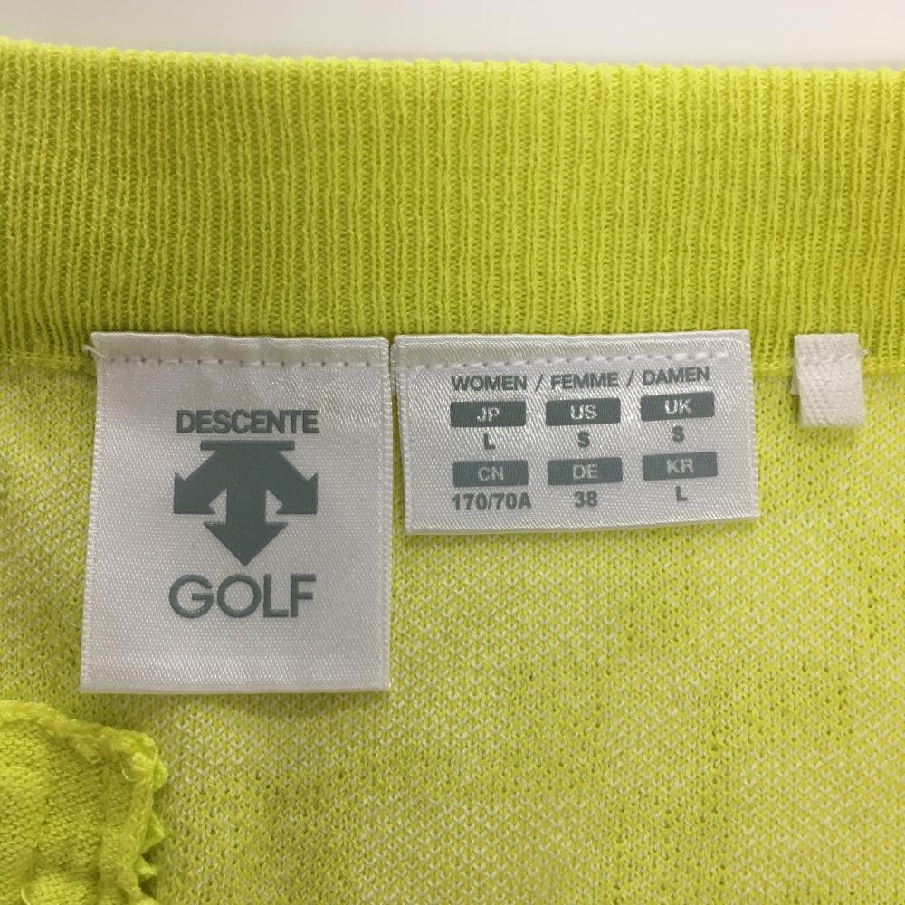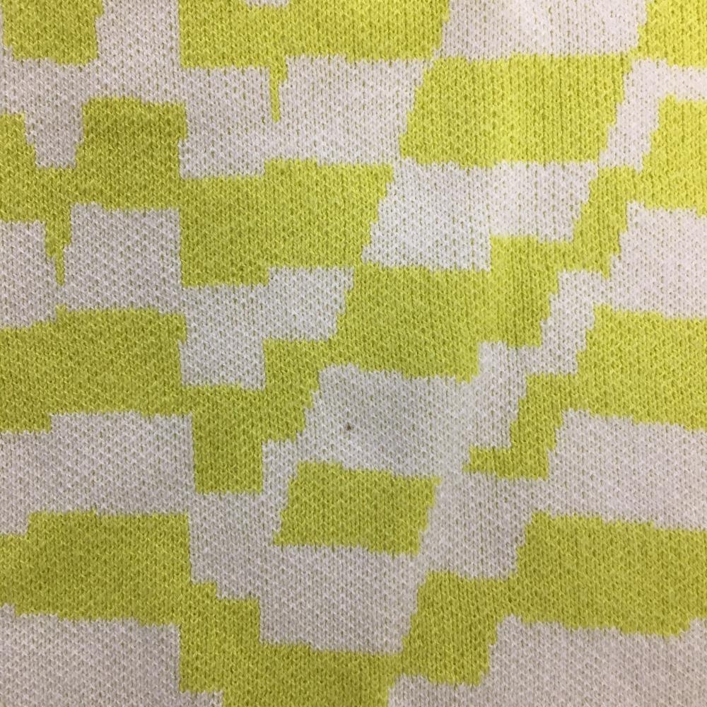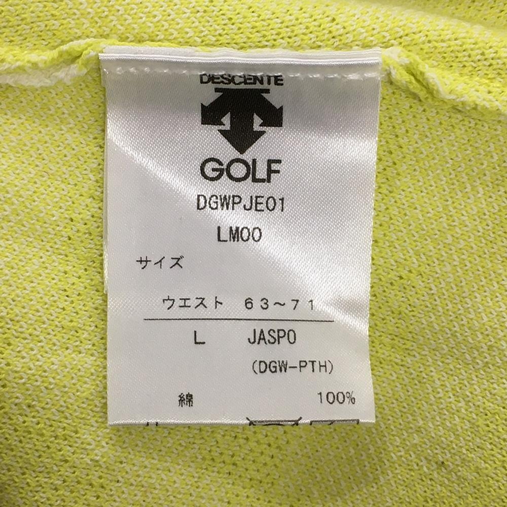 【美品】デサントゴルフ ニットスカート ライムイエロー×白 総柄 ウエストゴム 調節紐 中田英寿 レディース L ゴルフウェア DESCENTE