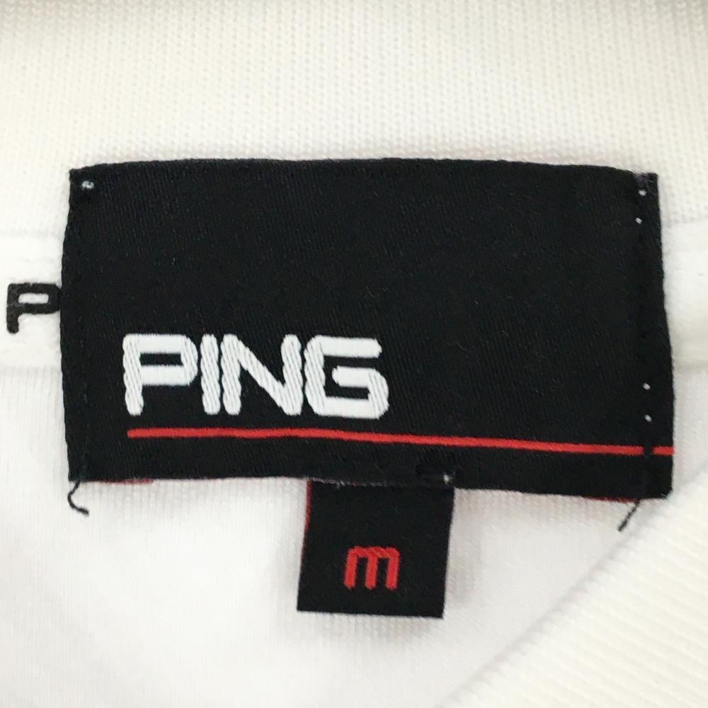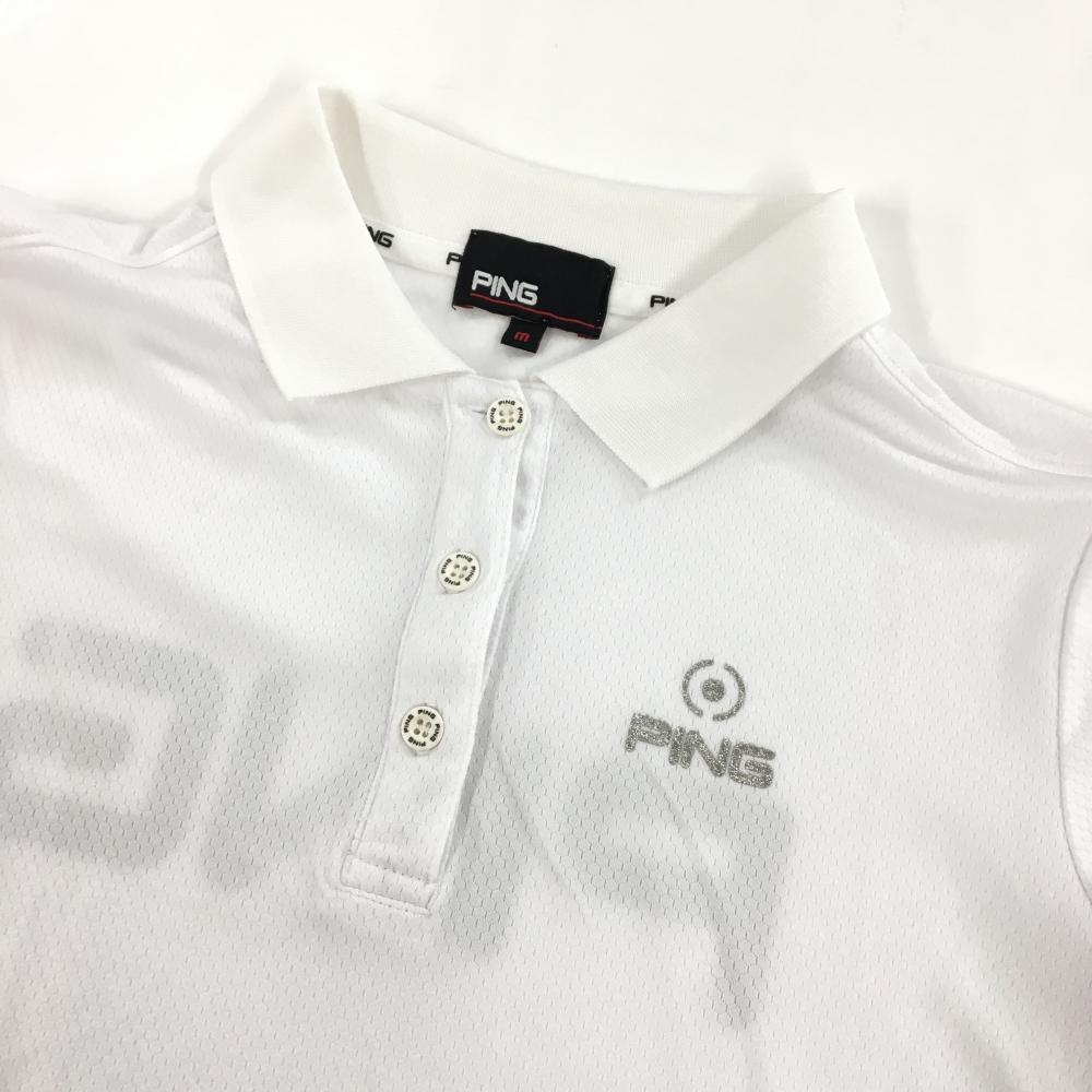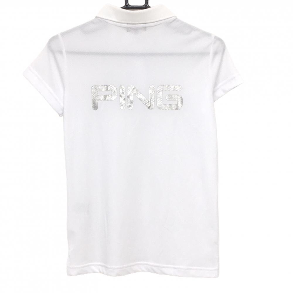 【超美品】ピン 半袖ポロシャツ 白 地模様 後ろロゴプリント レディース M ゴルフウェア PING