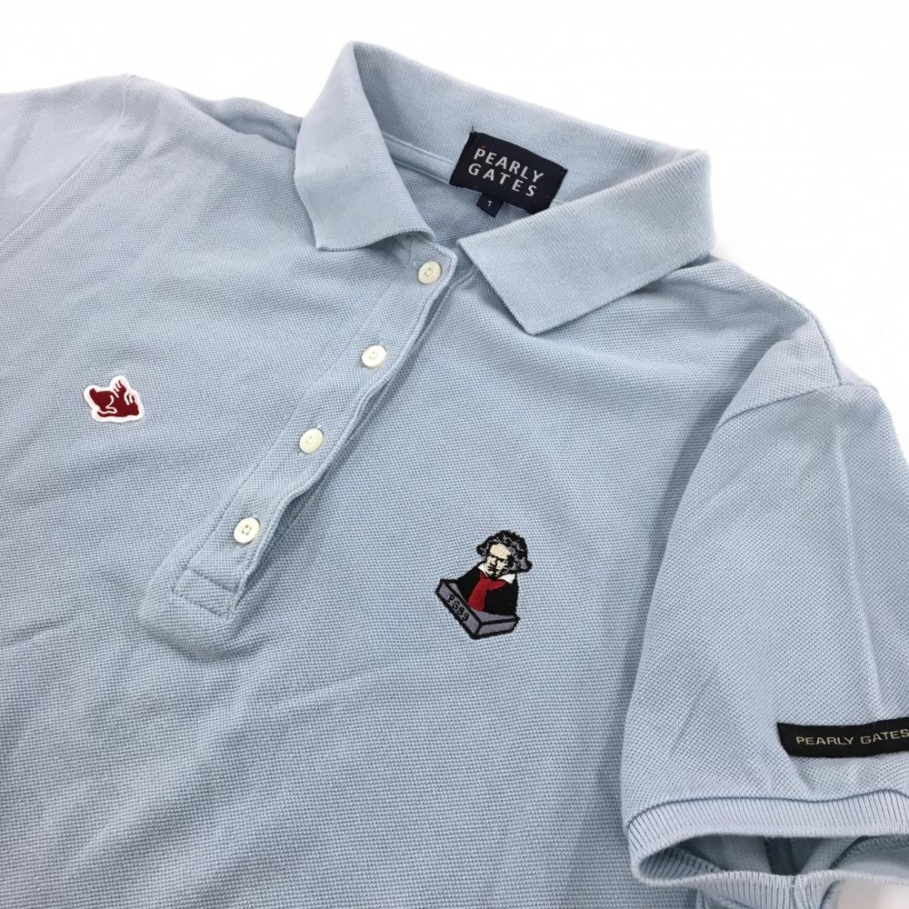 パーリーゲイツ 半袖ポロシャツ ライトブルー ベートーヴェン レディース 1(M) ゴルフウェア PEARLY GATES