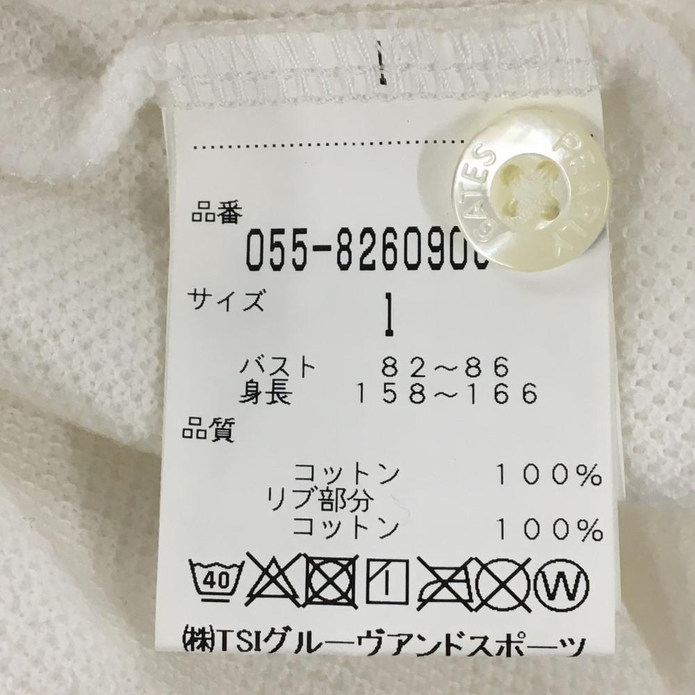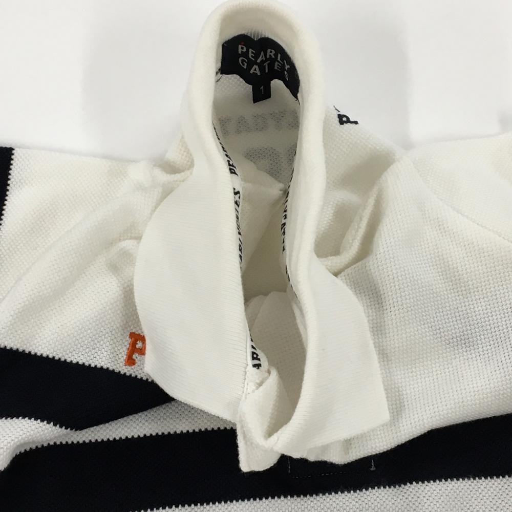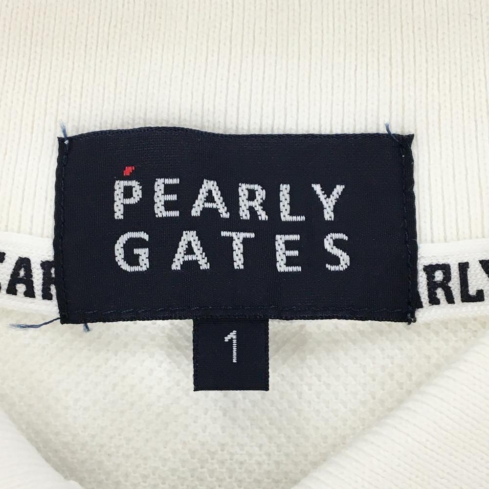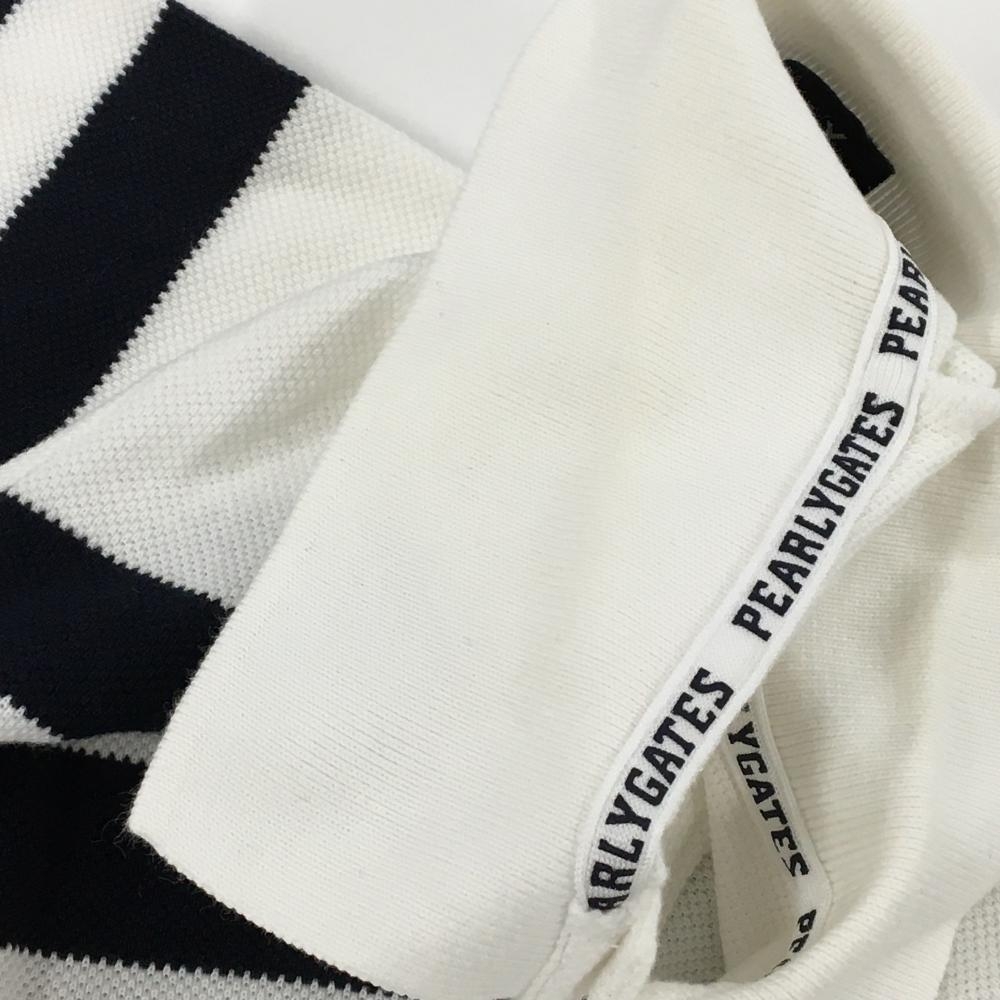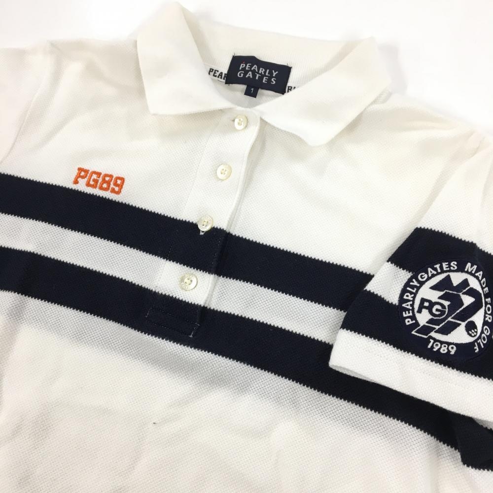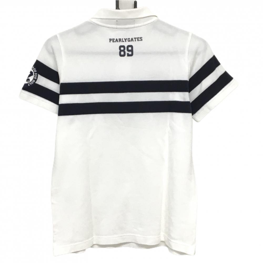 【美品】パーリーゲイツ 半袖ポロシャツ 白×ネイビー 胸ライン ロゴ刺しゅう レディース 1(M) ゴルフウェア PEARLY GATES