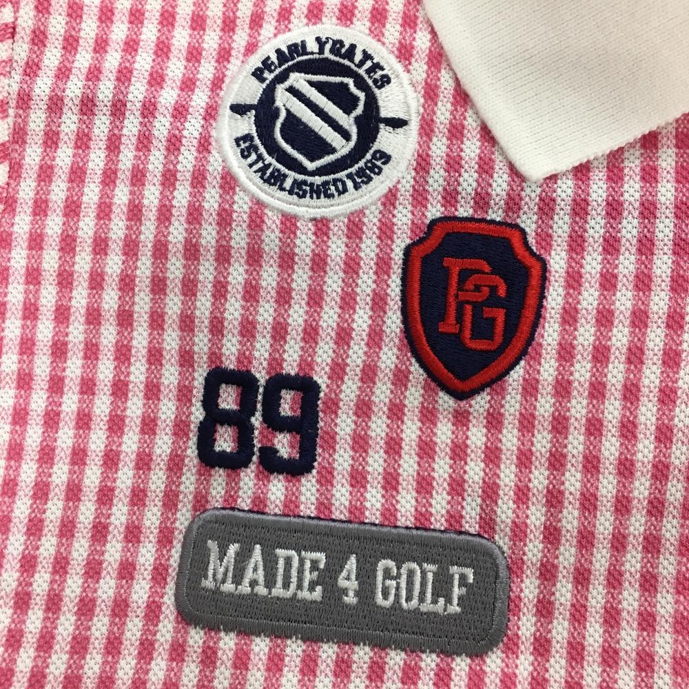 パーリーゲイツ 半袖ポロシャツ 白×ピンク ギンガムチェック ロゴワッペン レディース 0(S) ゴルフウェア PEARLY GATES