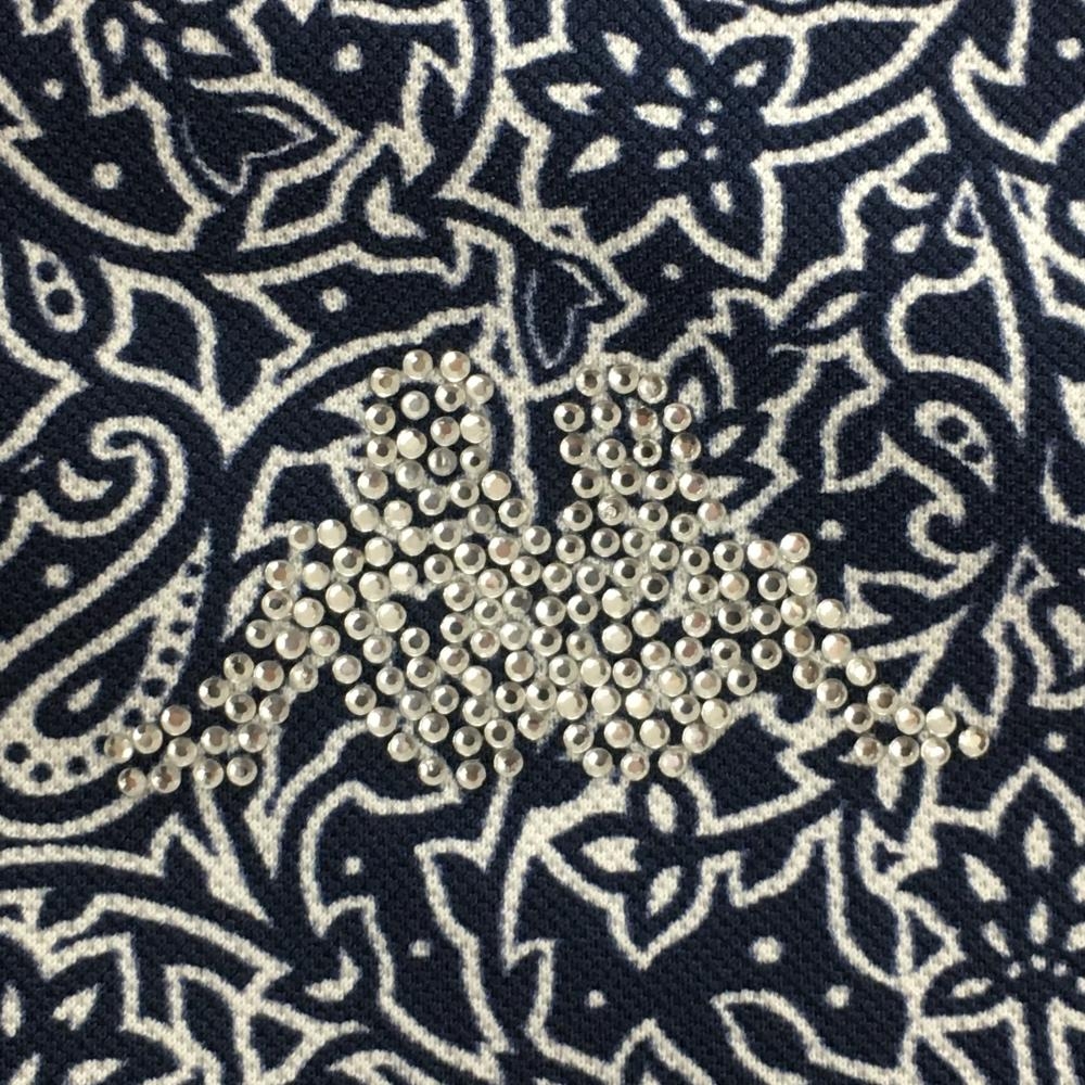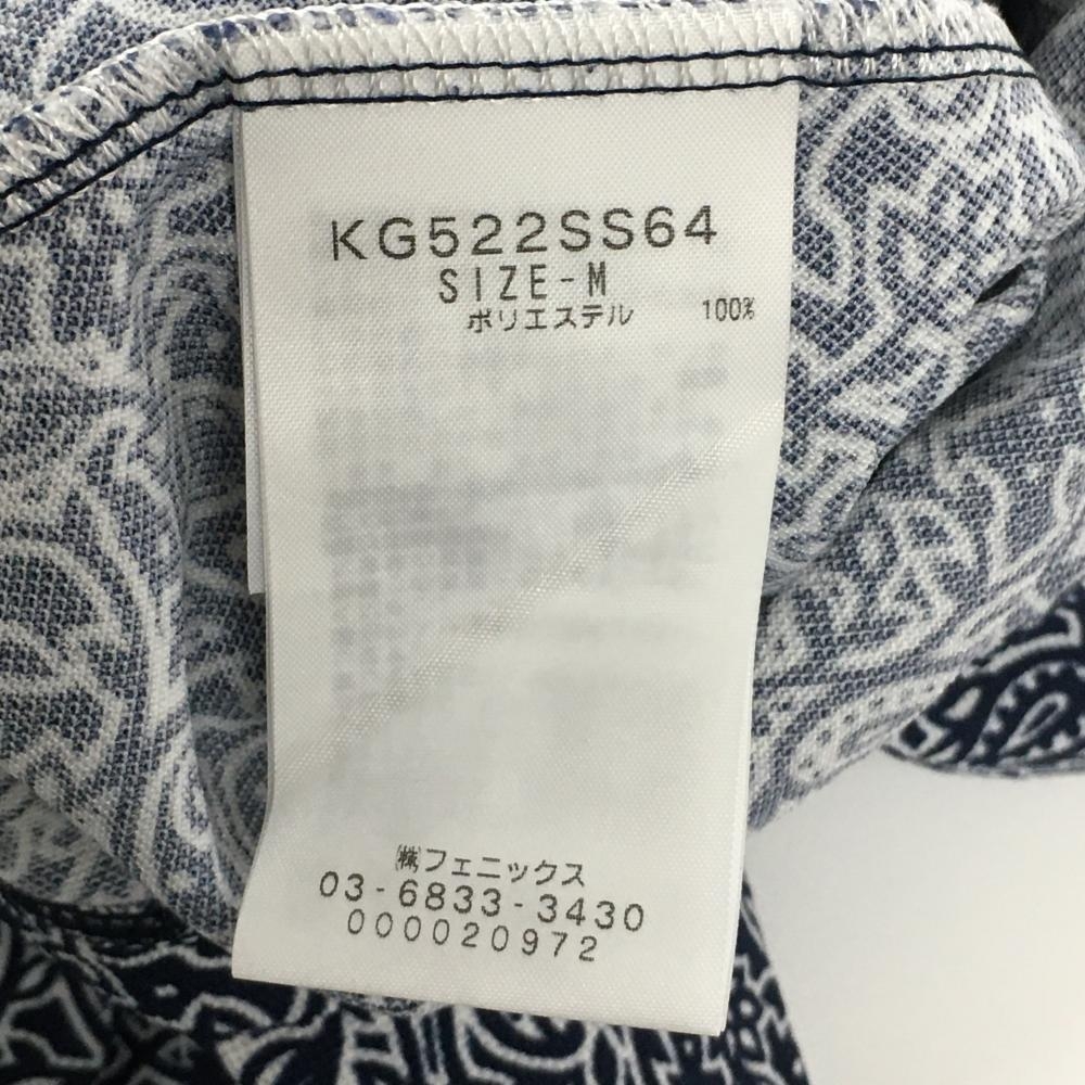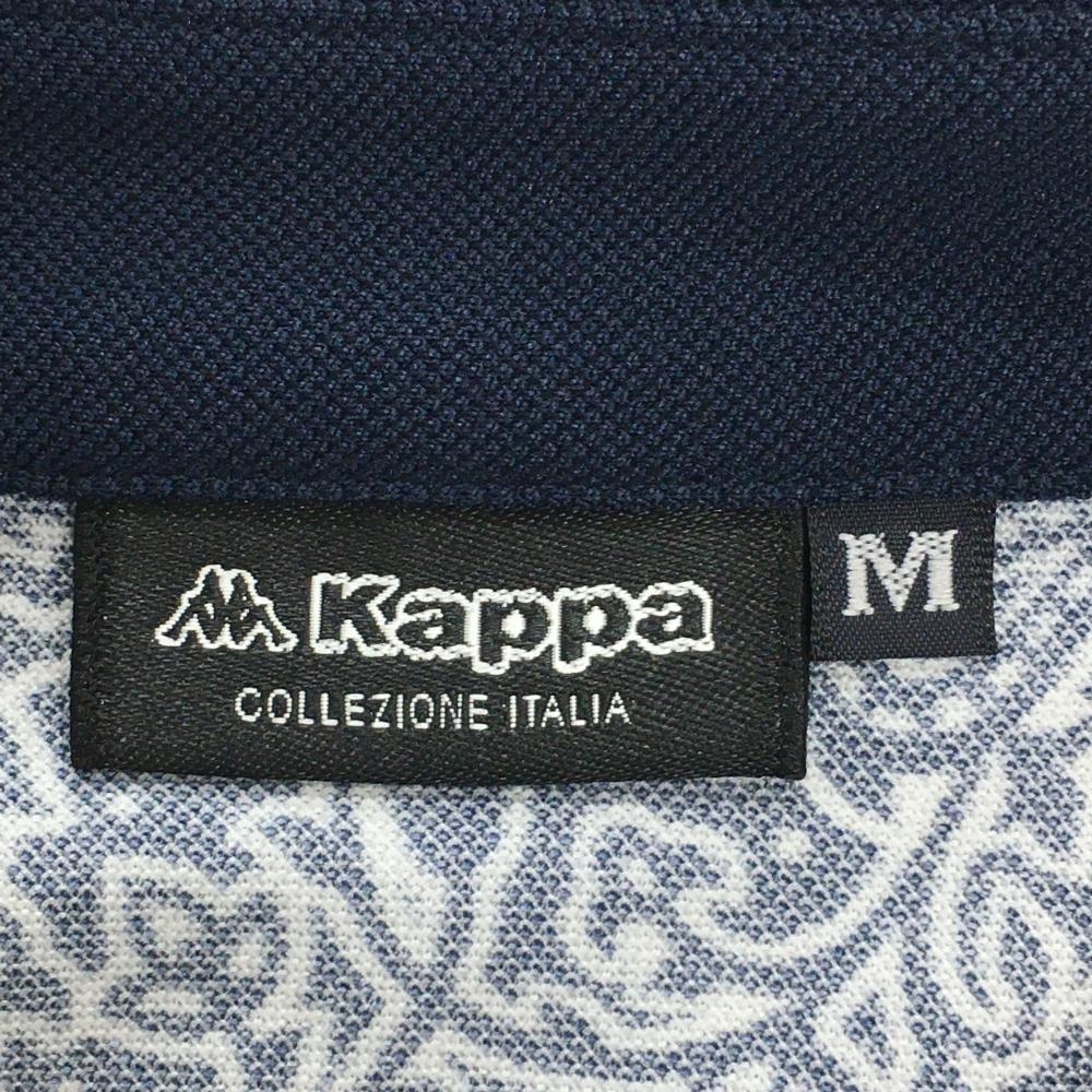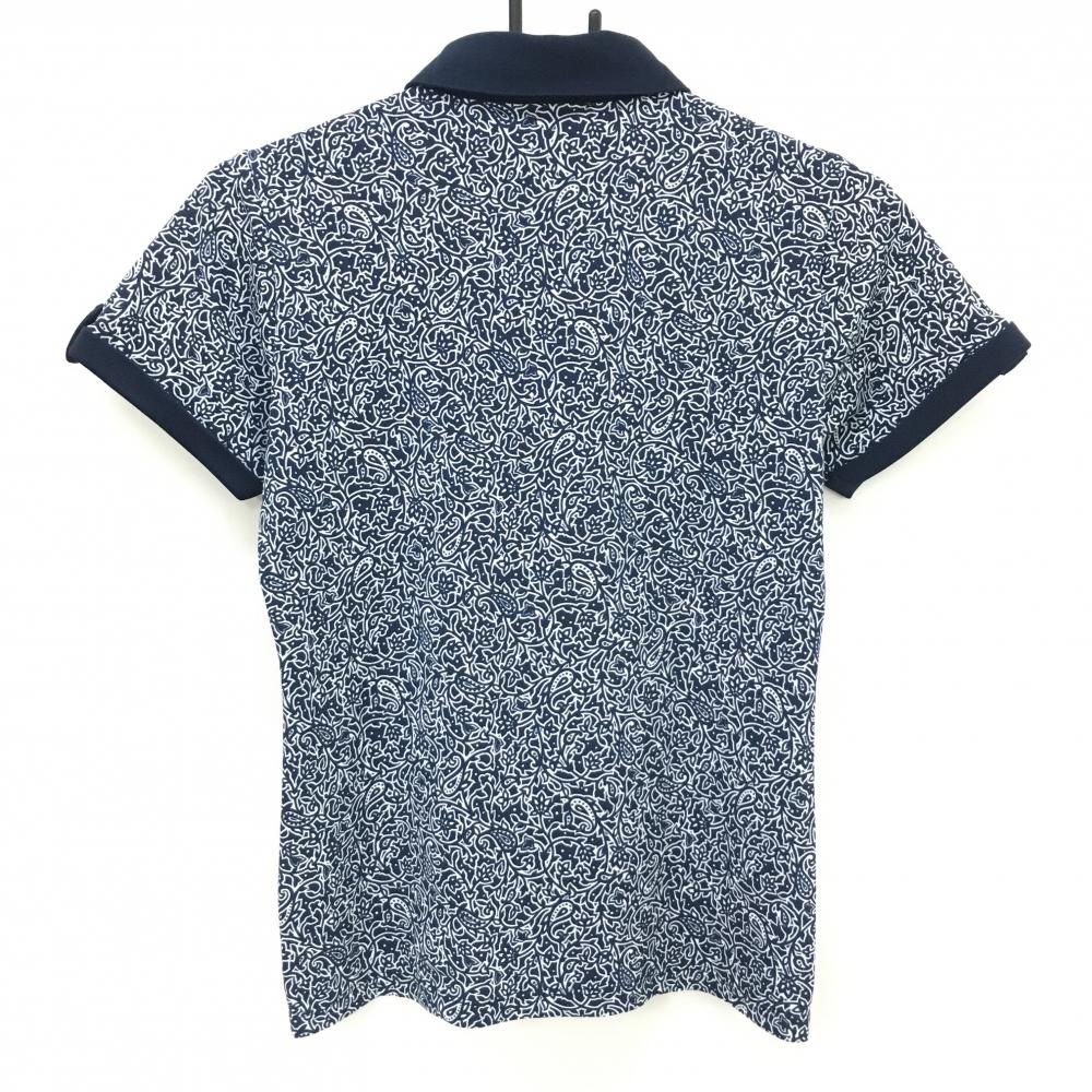 【超美品】カッパ 半袖ポロシャツ ネイビー×白 ペイズリー柄 ロゴラインストーン レディース M ゴルフウェア Kappa