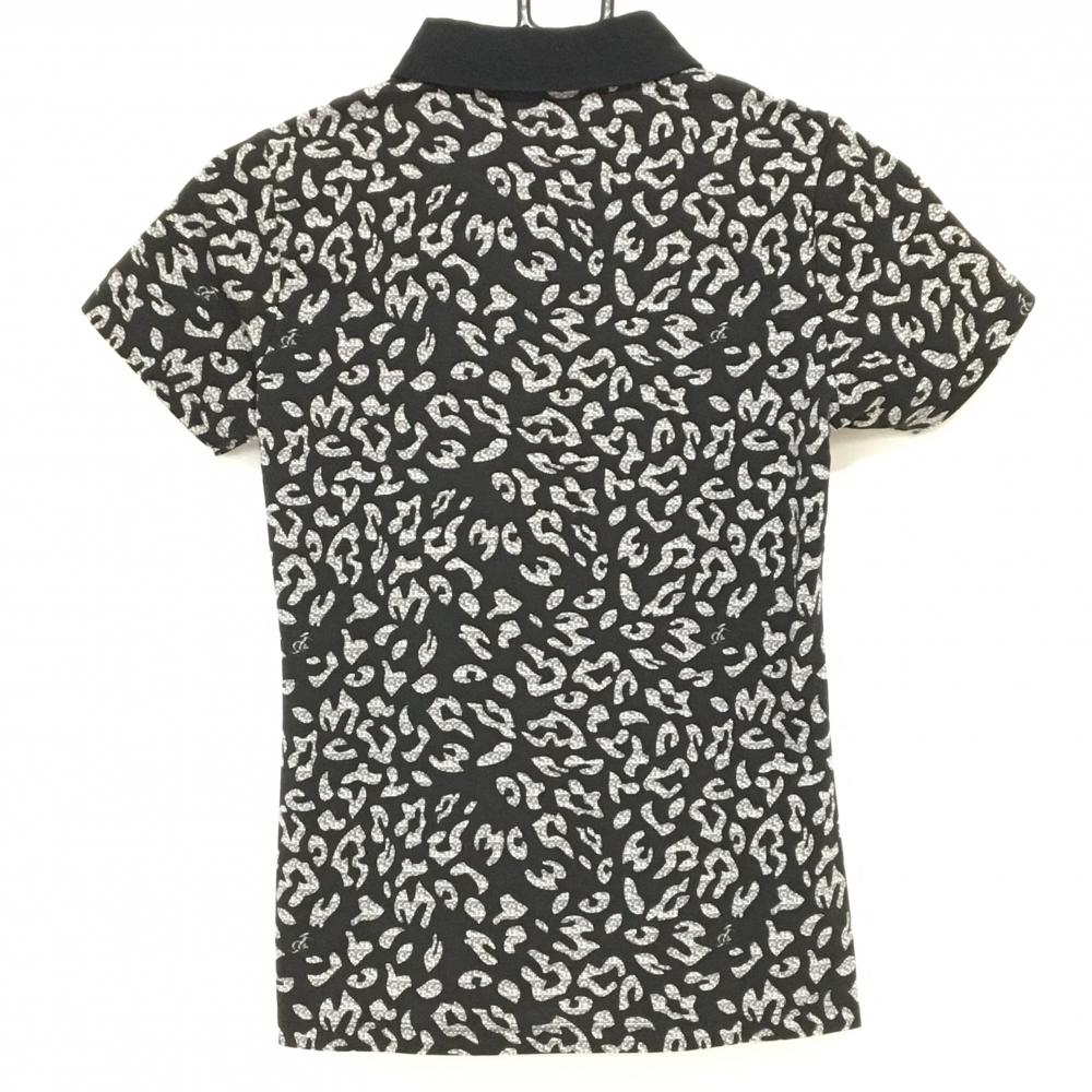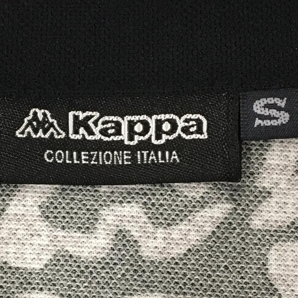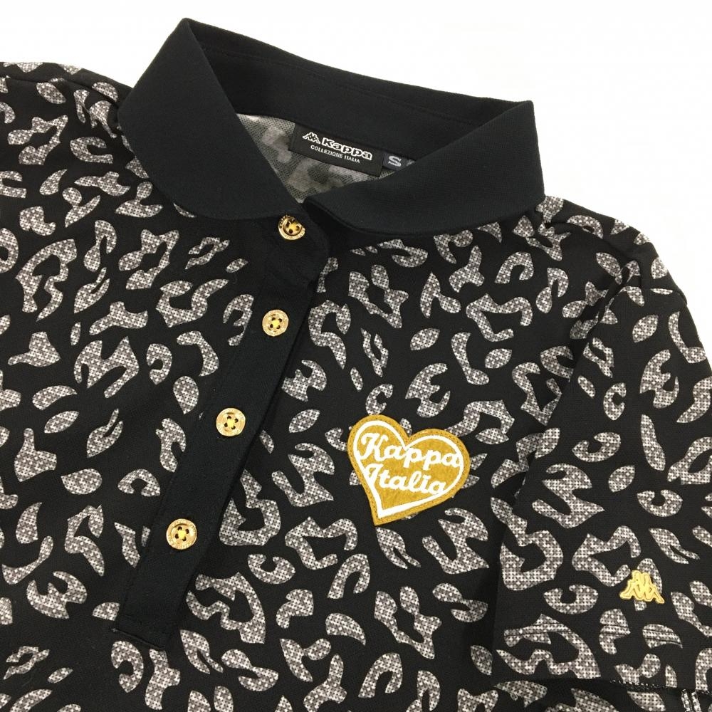 【超美品】カッパ 半袖ポロシャツ 黒×グレー 総柄 ハートワッペン 襟裏ロゴ レディース S ゴルフウェア Kappa