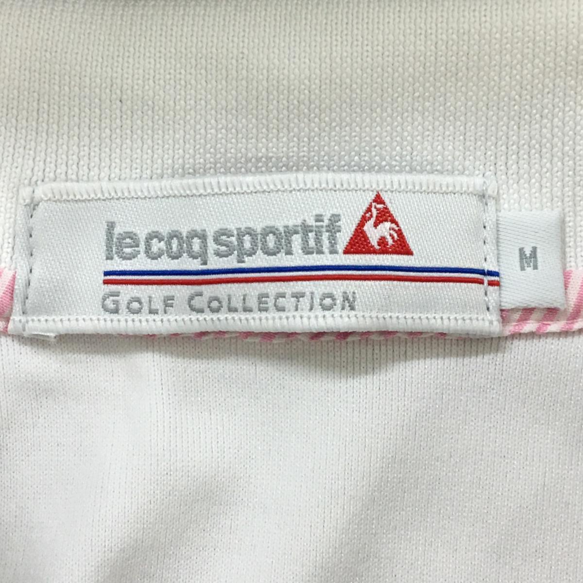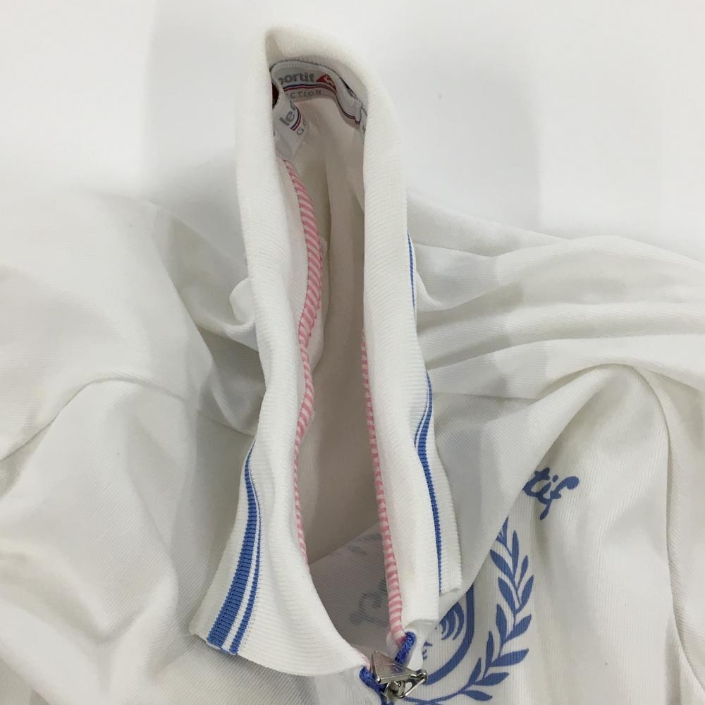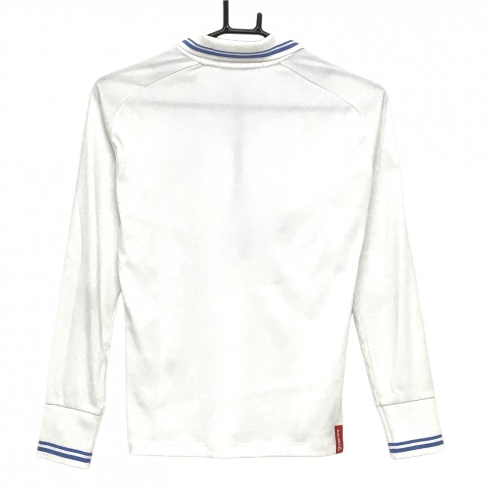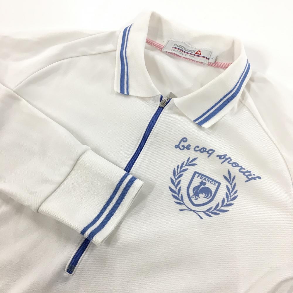 ルコックゴルフ 長袖ポロシャツ 白×ブルー 襟・袖ライン 胸元ロゴ ハーフジップ レディース M ゴルフウェア le coq sportif
