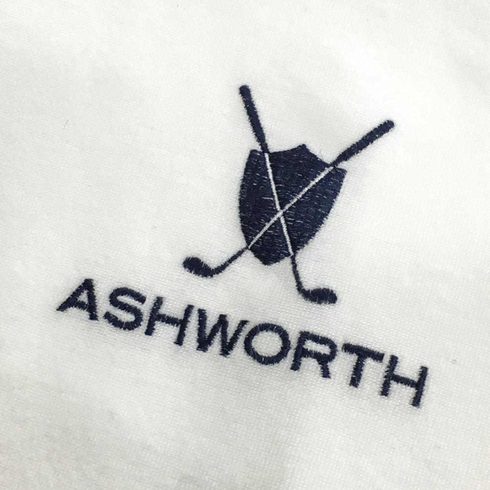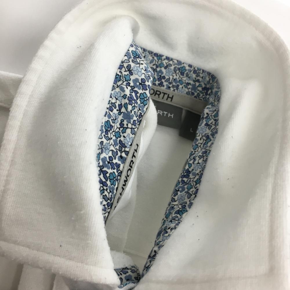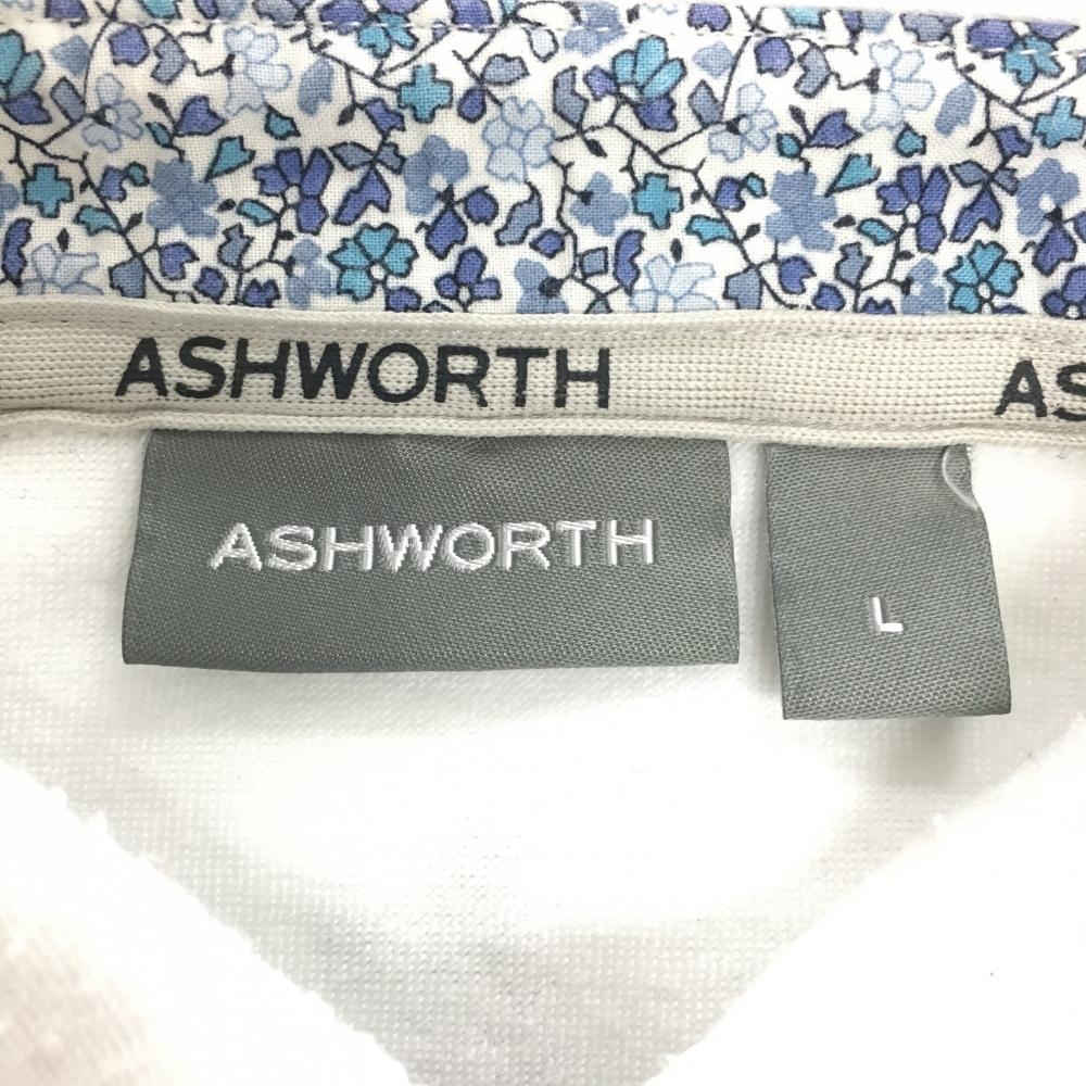 アシュワース 半袖ポロシャツ 白 胸元ロゴ ネック・前立て内側花柄 メンズ L ゴルフウェア ASHWORTH