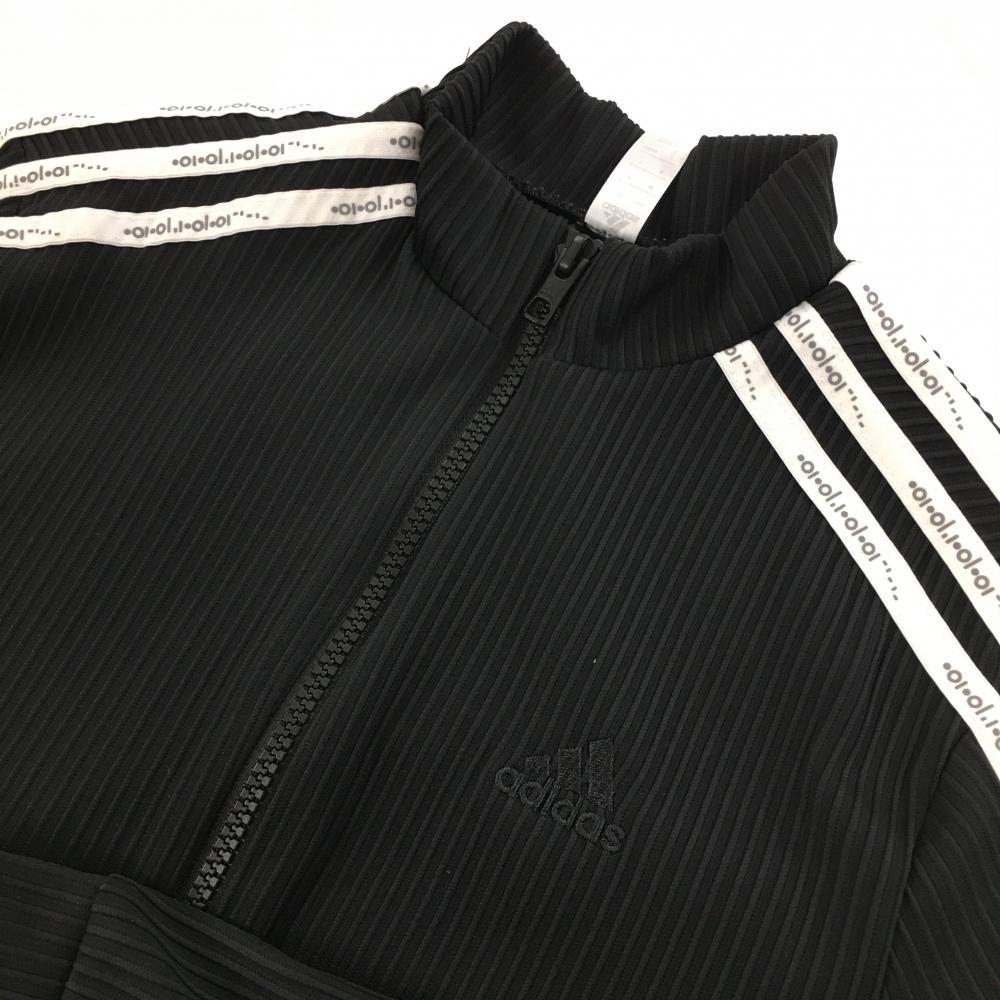 【超美品】アディダス ジャケット 黒×白 ストライプ織生地 袖3ライン レディース S ゴルフウェア adidas