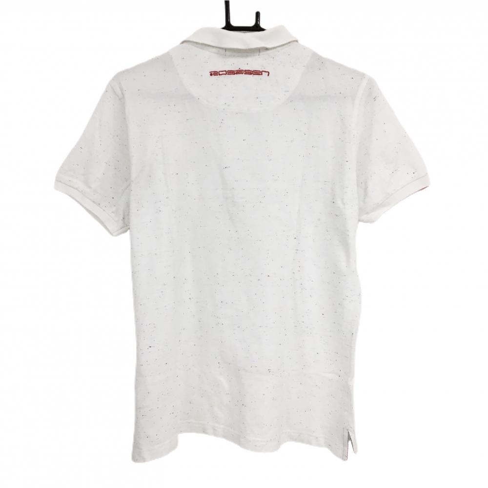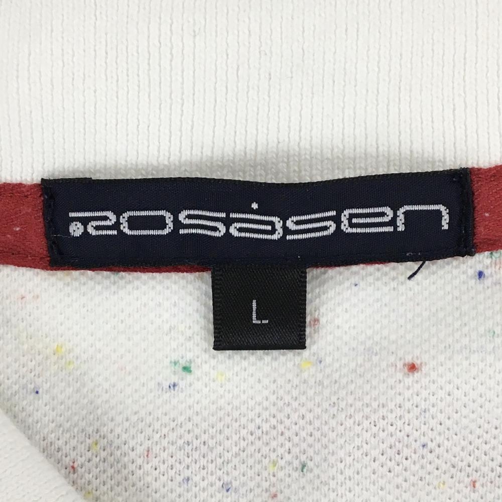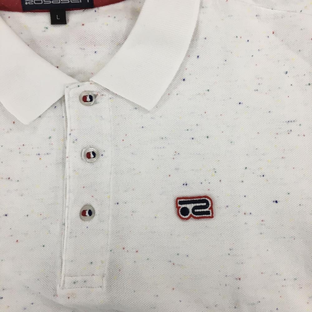 【超美品】ロサーセン 半袖ポロシャツ 白×マルチカラー 地模様 胸元ワッペン メンズ L ゴルフウェア Rosasen