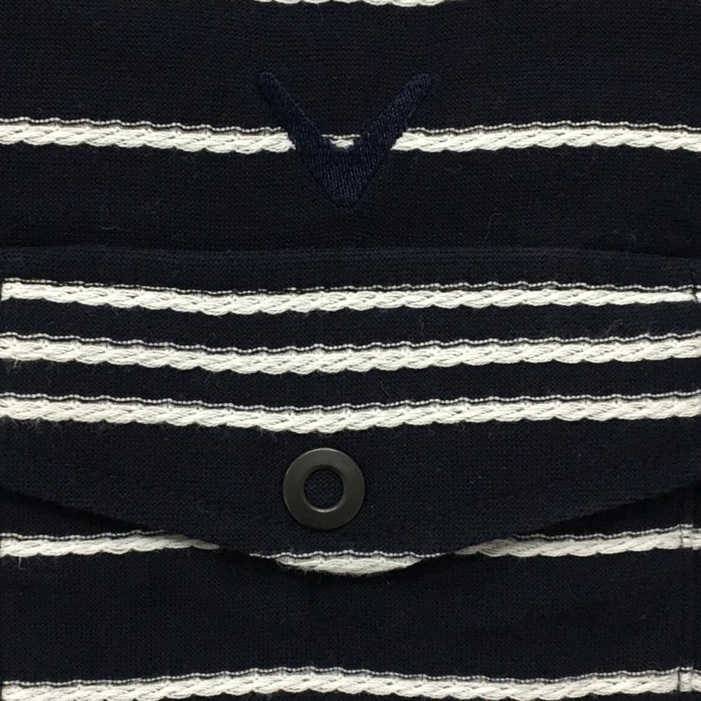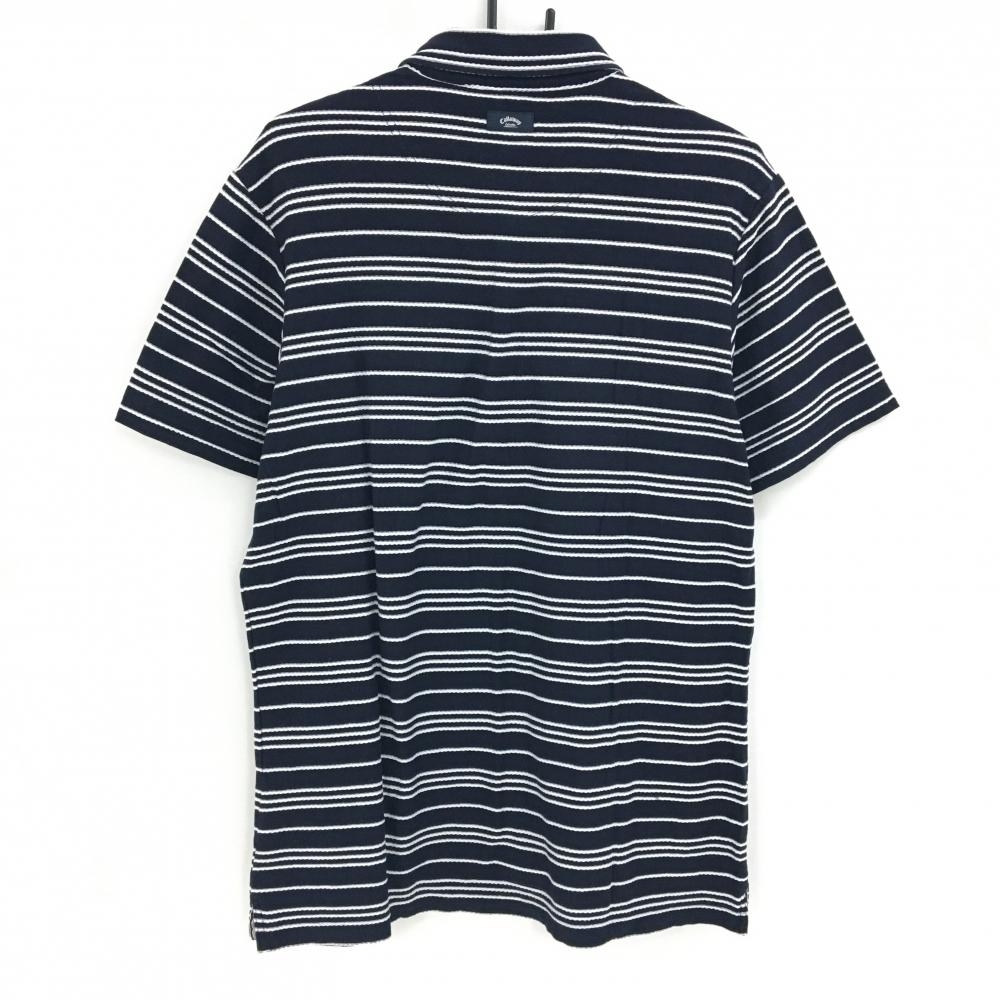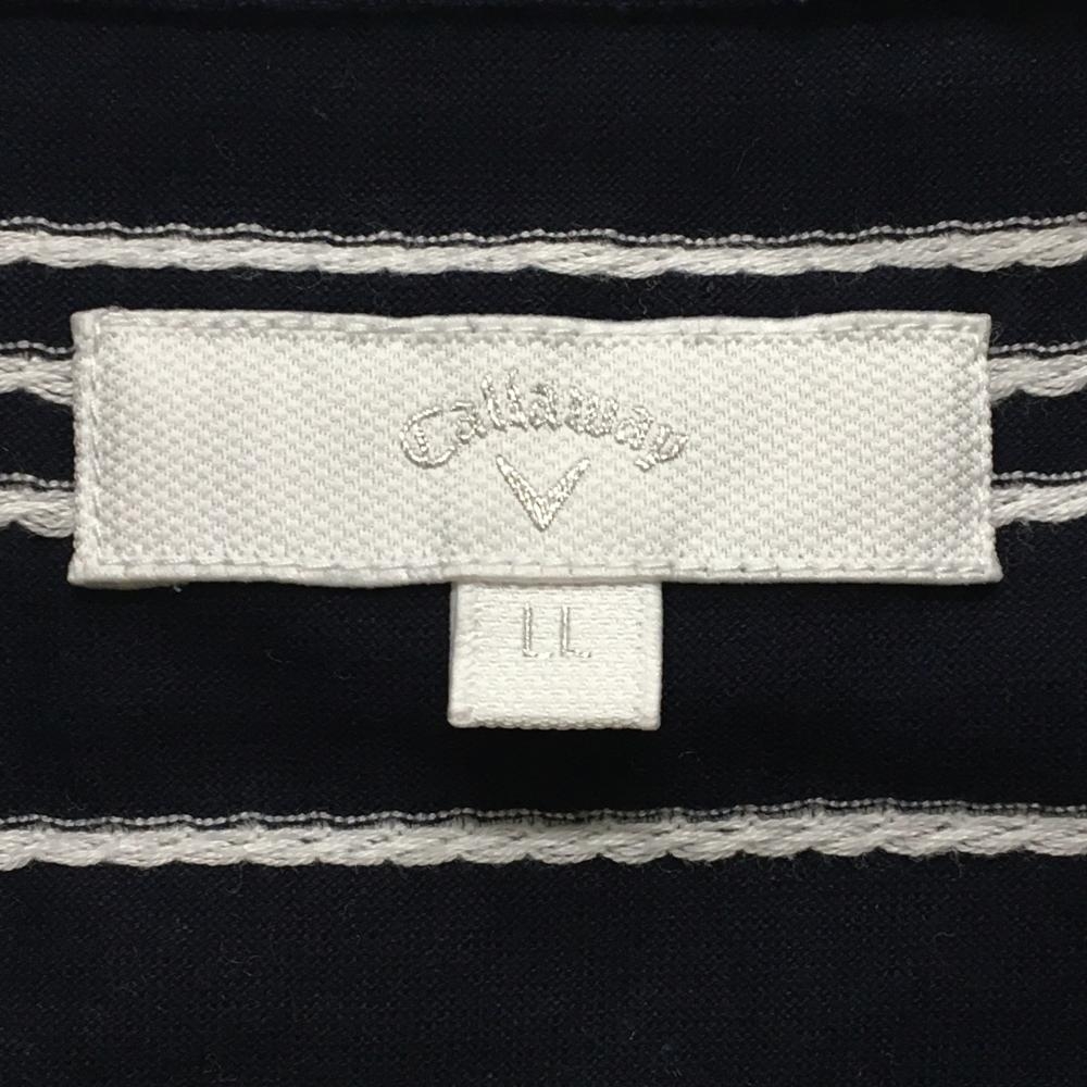 【美品】キャロウェイ 半袖ポロシャツ ネイビー×白 ボーダー スナップボタン メンズ LL ゴルフウェア Callaway