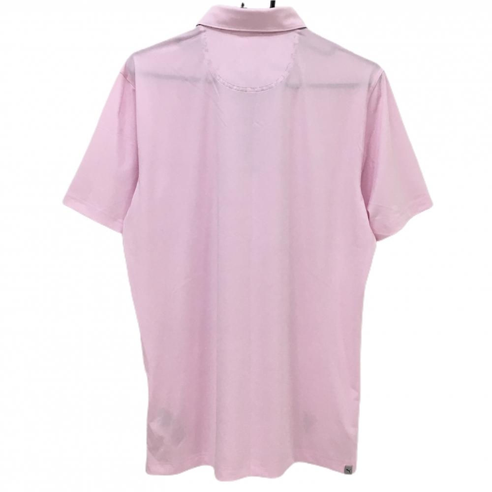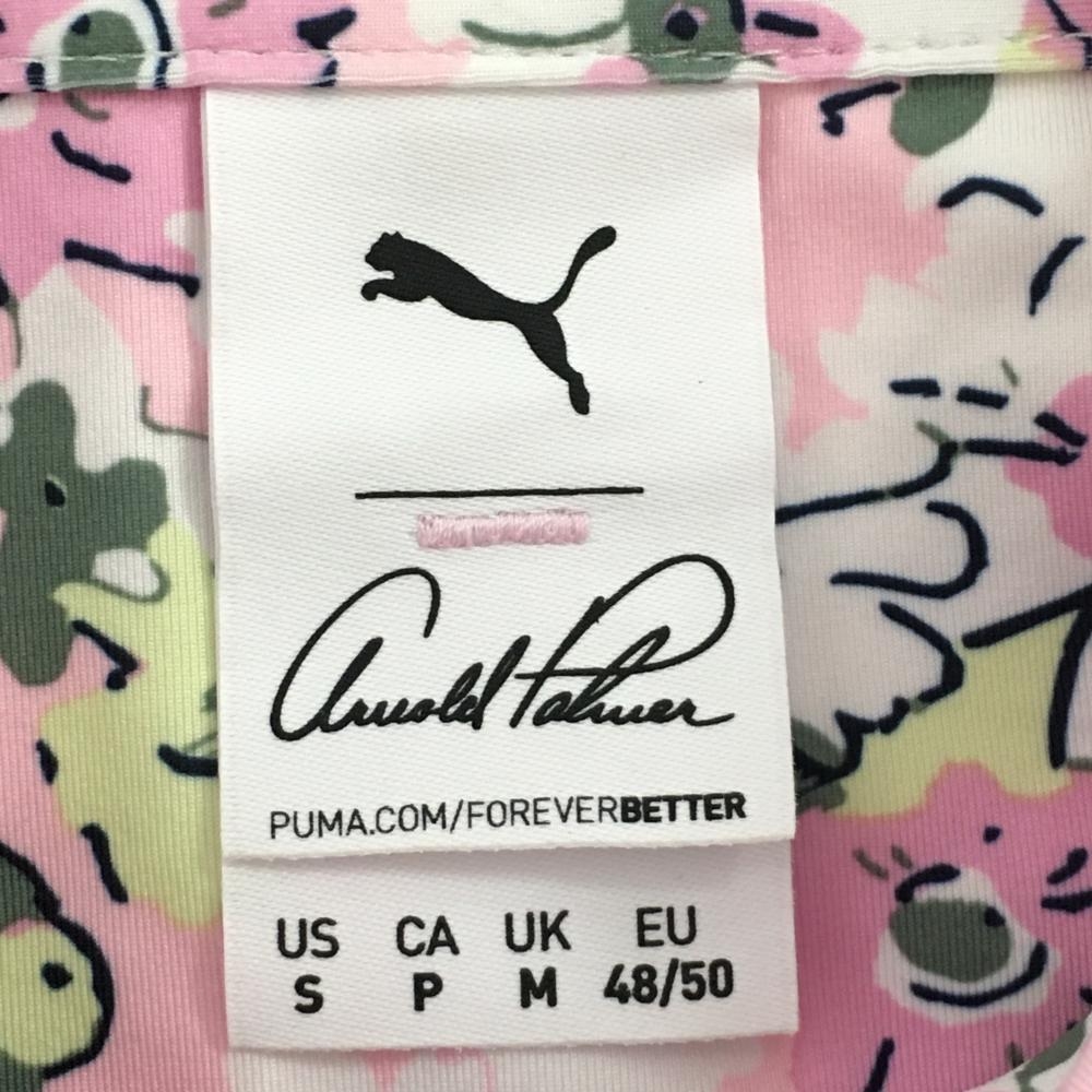 【超美品】プーマ×アーノルドパーマー 半袖ポロシャツ ピンク シリコンロゴ 胸糸引き メンズ US-S ゴルフウェア PUMA