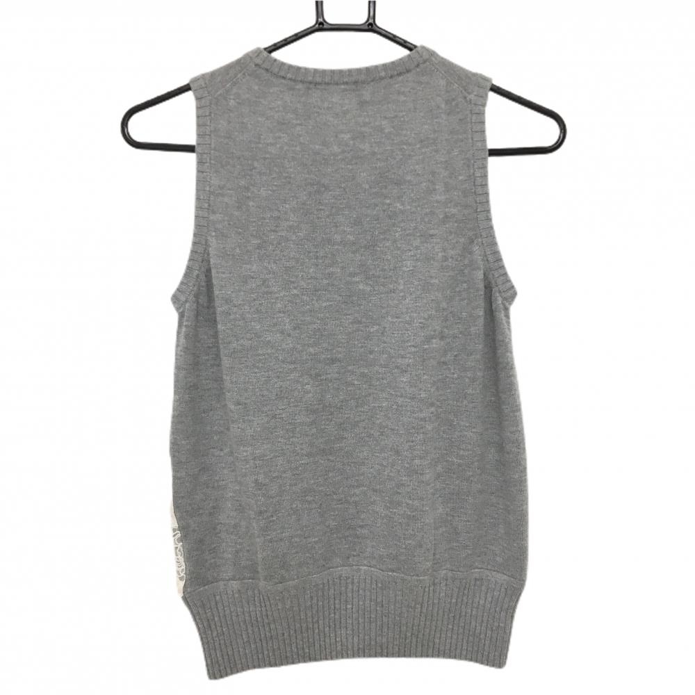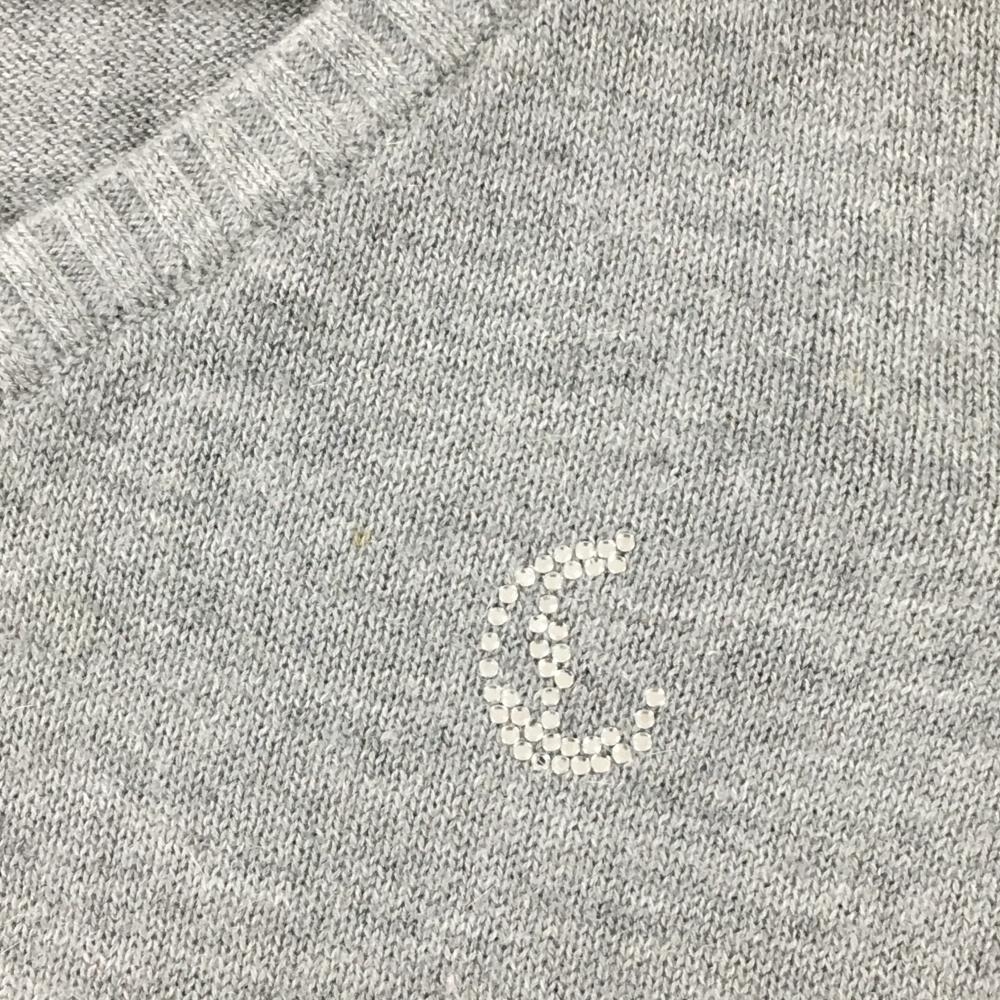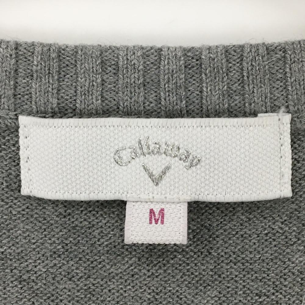 キャロウェイ ニットベスト グレー×白 腹部レース ラインストーンロゴ レディース M ゴルフウェア Callaway