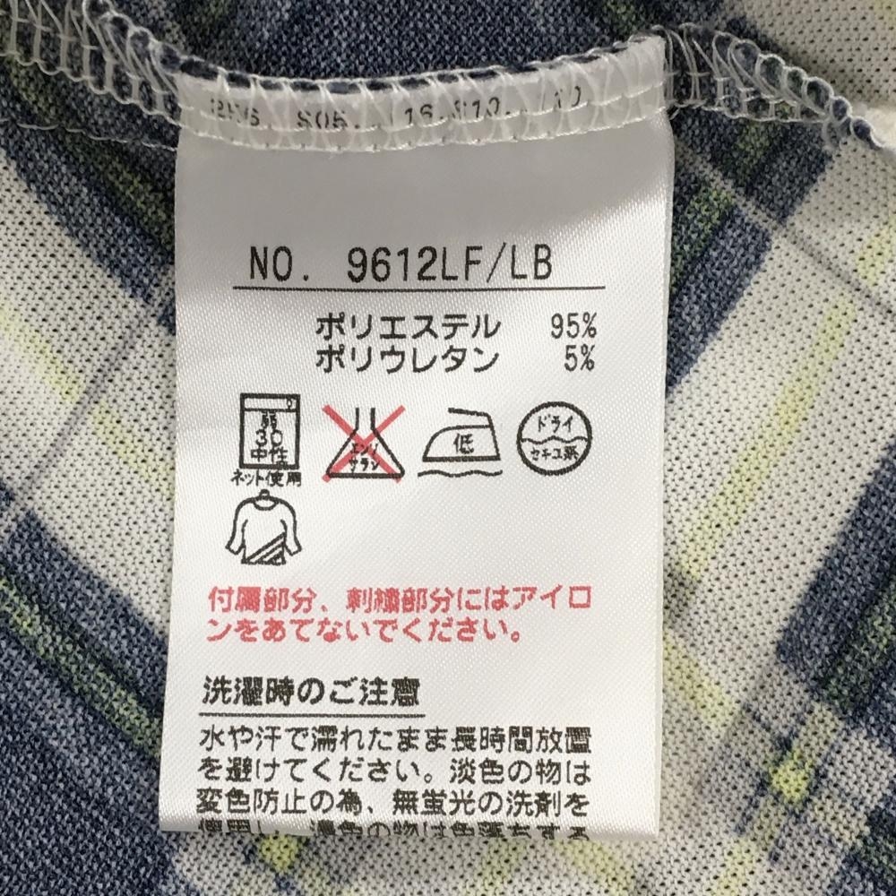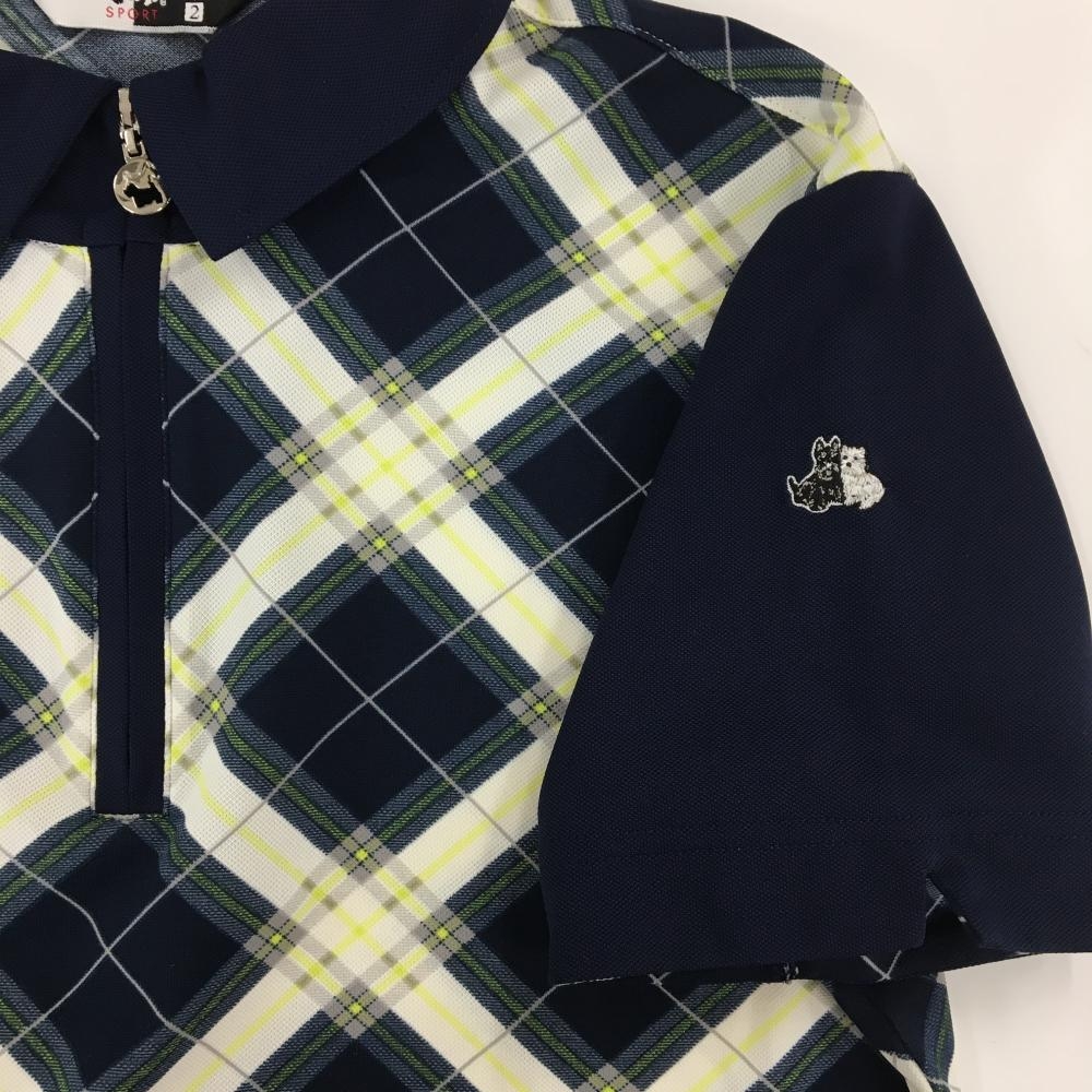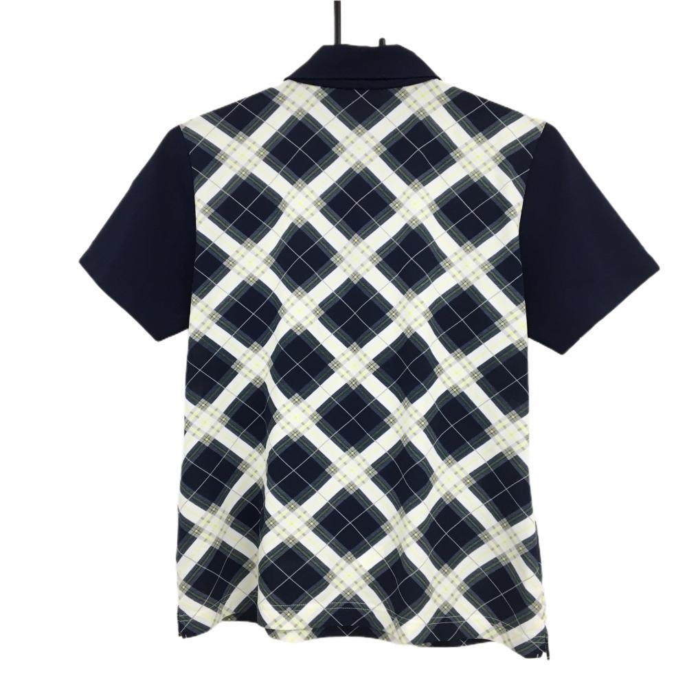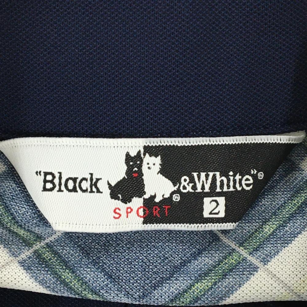 【超美品】ブラックアンドホワイト 半袖ポロシャツ ネイビー×白 身頃チェック ハーフジップ レディース 2(M) ゴルフウェア Black&White