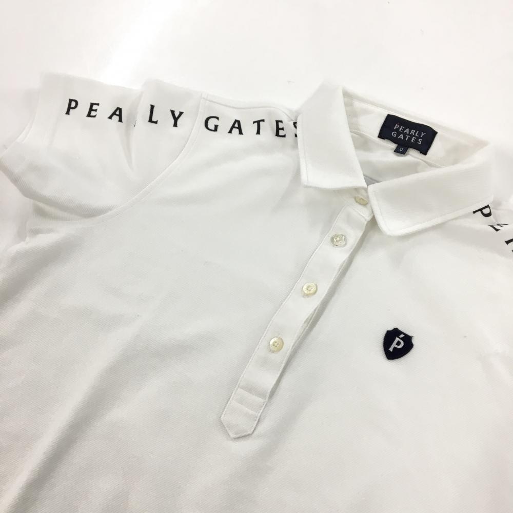 パーリーゲイツ 半袖ポロシャツ 白×黒 袖・肩ロゴプリント レディース 0(S) ゴルフウェア PEARLY GATES