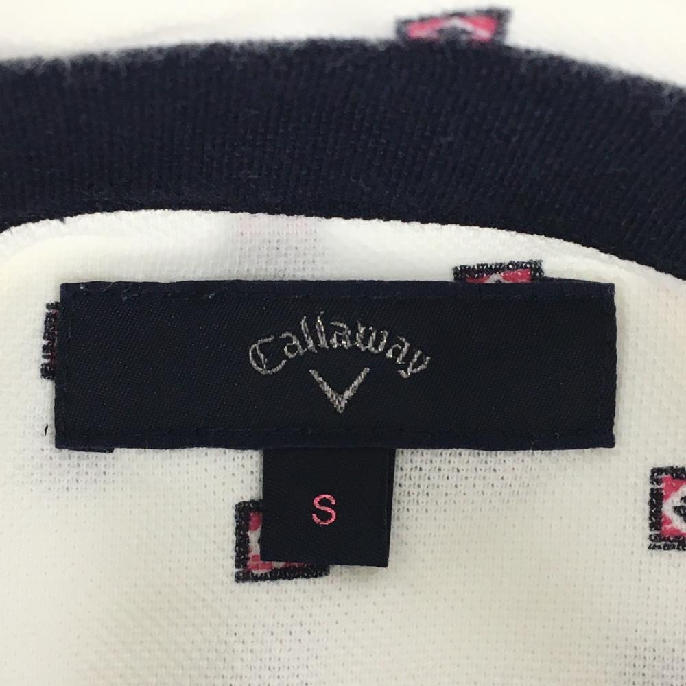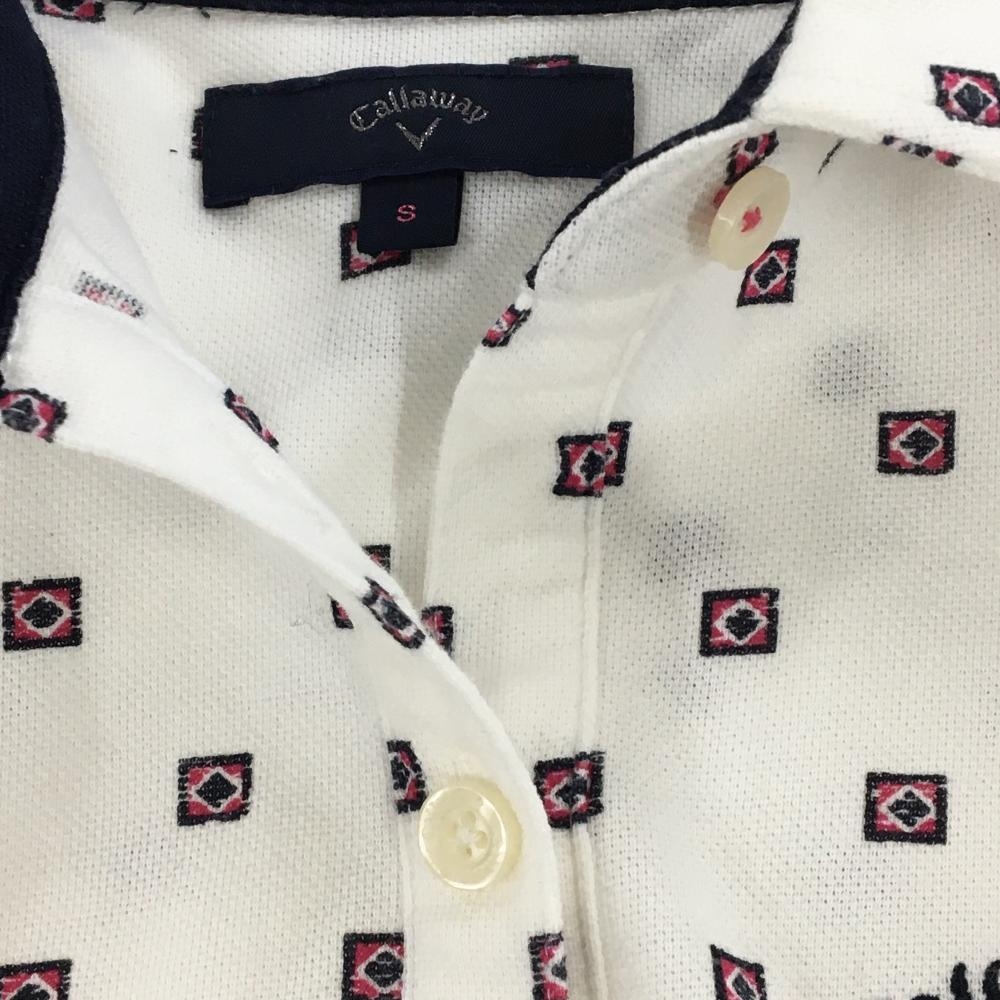キャロウェイ 半袖ポロシャツ 白×レッド 総柄 レディース S ゴルフウェア Callaway