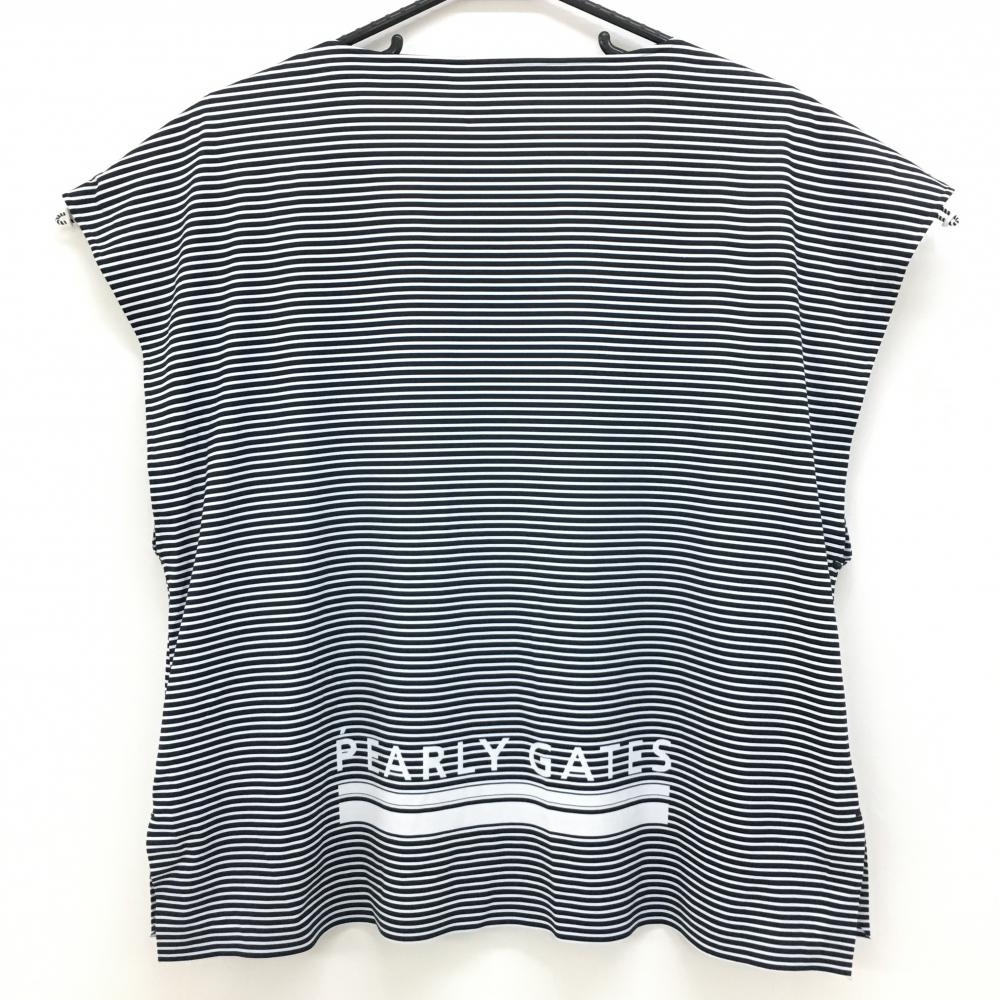 【超美品】PGGパーリーゲイツ Tシャツ 白×黒 ボーダー フロントロゴ フレンチスリーブ レディース 1(M) ゴルフウェア PEARLY GATES