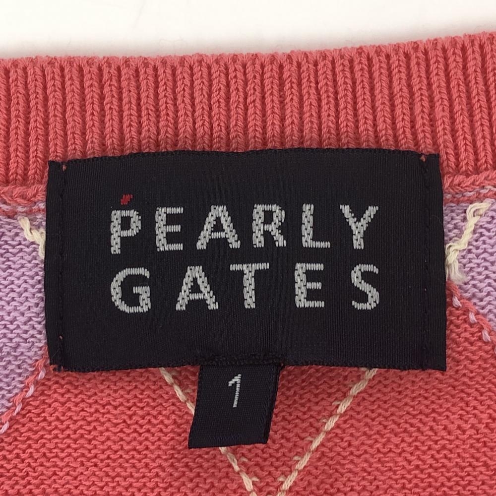 【超美品】パーリーゲイツ ニットベスト ライトピンク×ライトパープル アーガイル レディース 1(M) ゴルフウェア PEARLY GATES