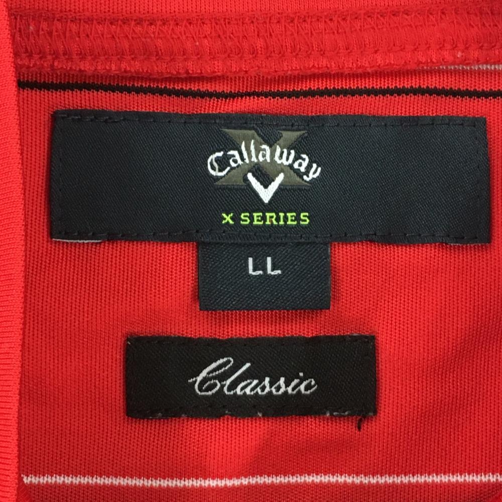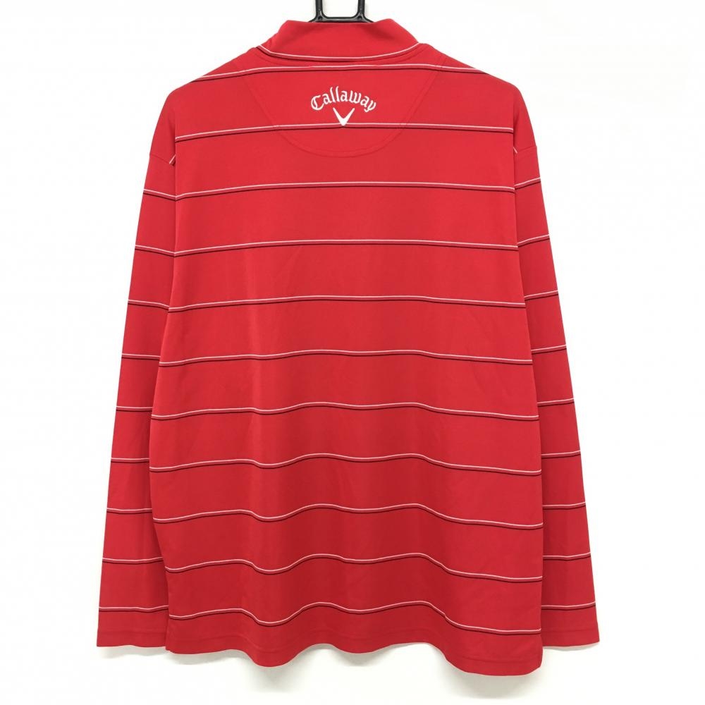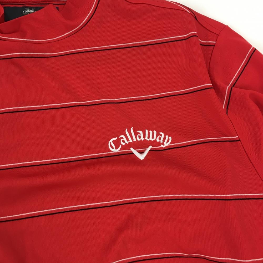 【超美品】キャロウェイ 長袖ハイネックシャツ レッド×白 ボーダー メンズ LL ゴルフウェア Callaway