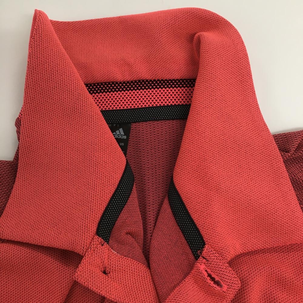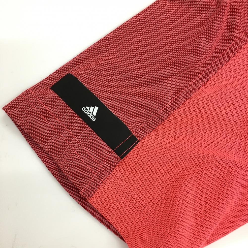 【美品】アディダス 半袖ポロシャツ サーモンオレンジ サイド3ライン メンズ L ゴルフウェア adidas