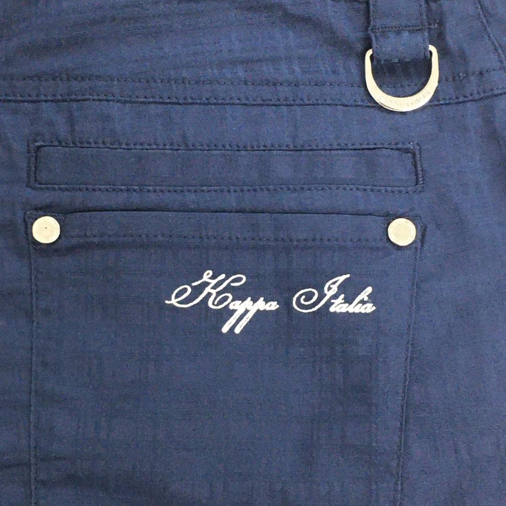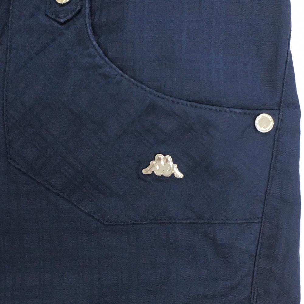 【美品】カッパ パンツ ネイビー チェック柄地模様 立体ロゴ レディース 7 ゴルフウェア Kappa