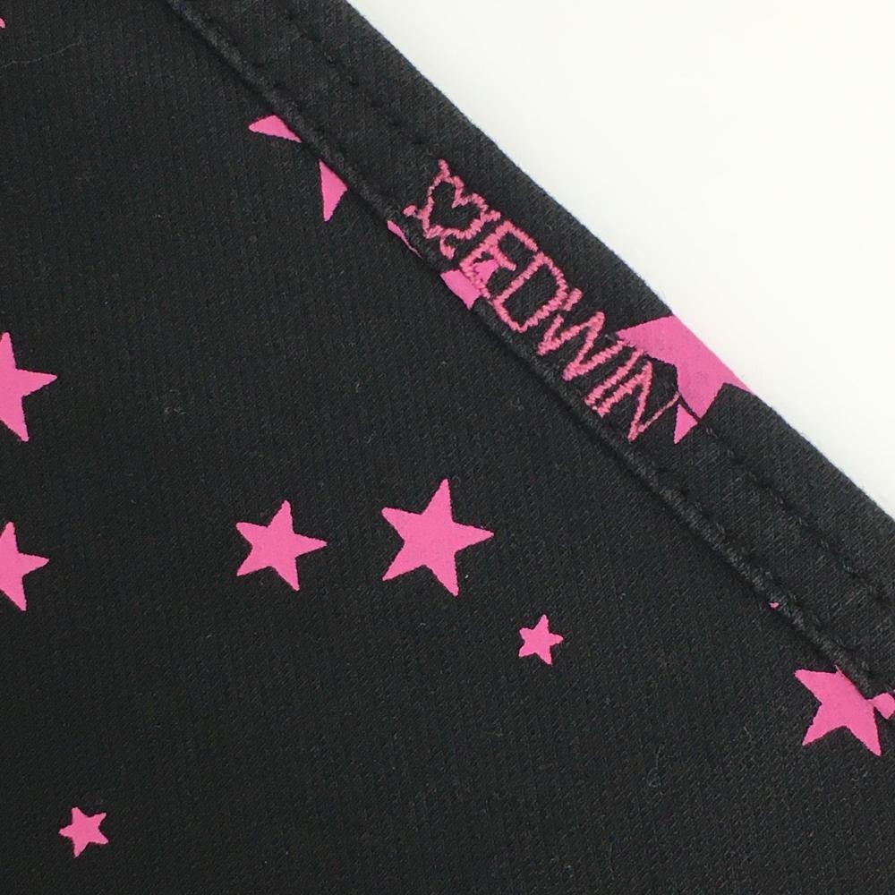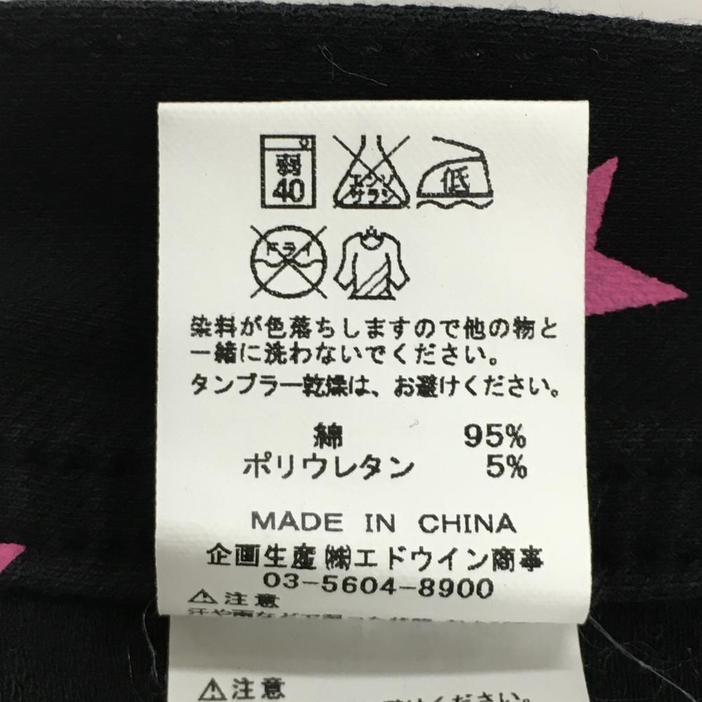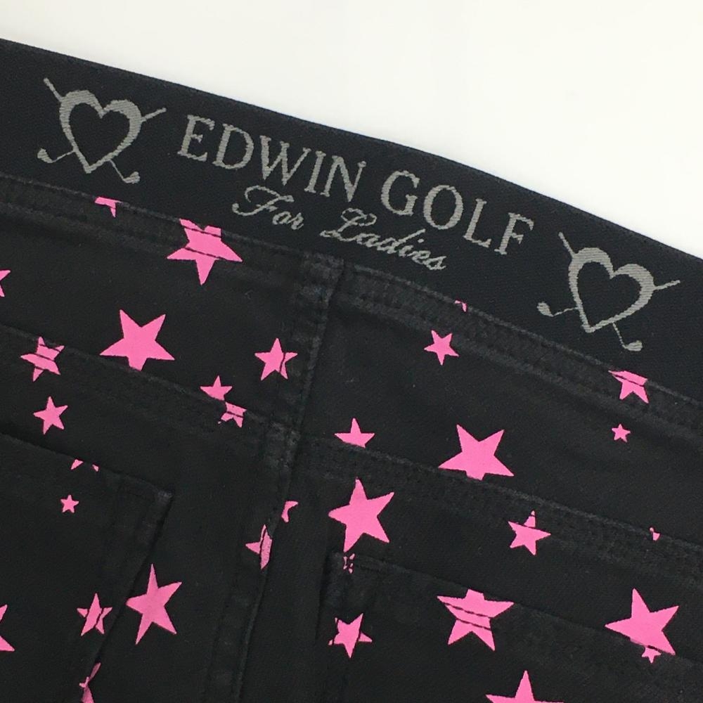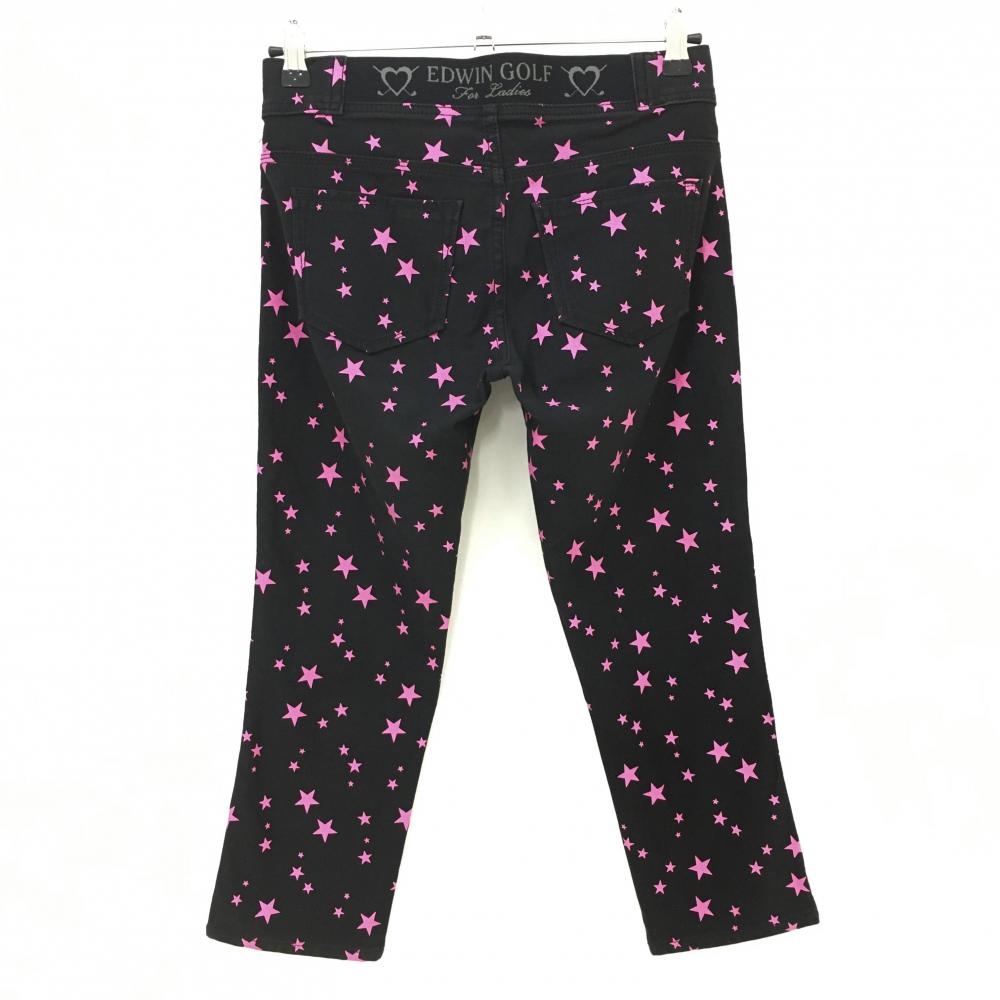 【美品】エドウィン 七分丈パンツ 黒×ピンク 星柄 ストレッチ フェイクポケット レディース M ゴルフウェア EDWIN GOLF